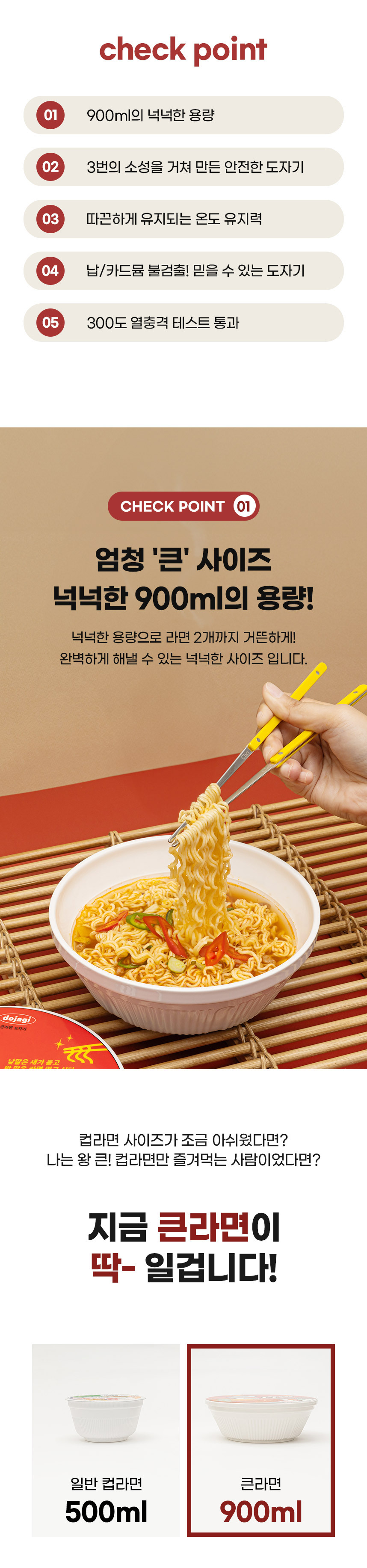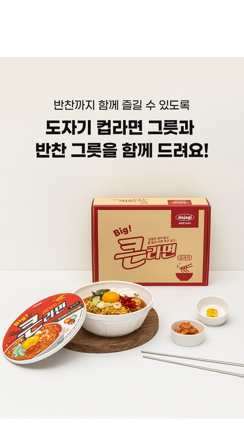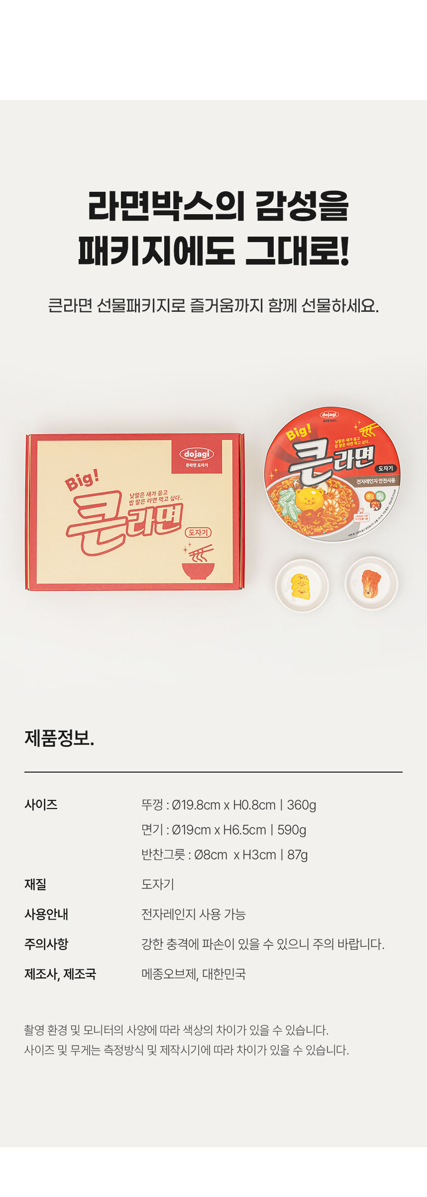 큰라면 도자기 컵라면 그릇 면기 세트 + 찬기 2종