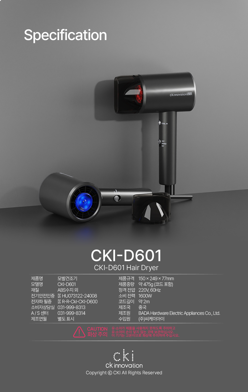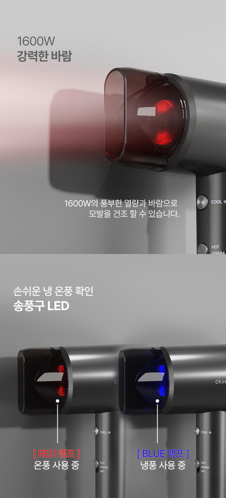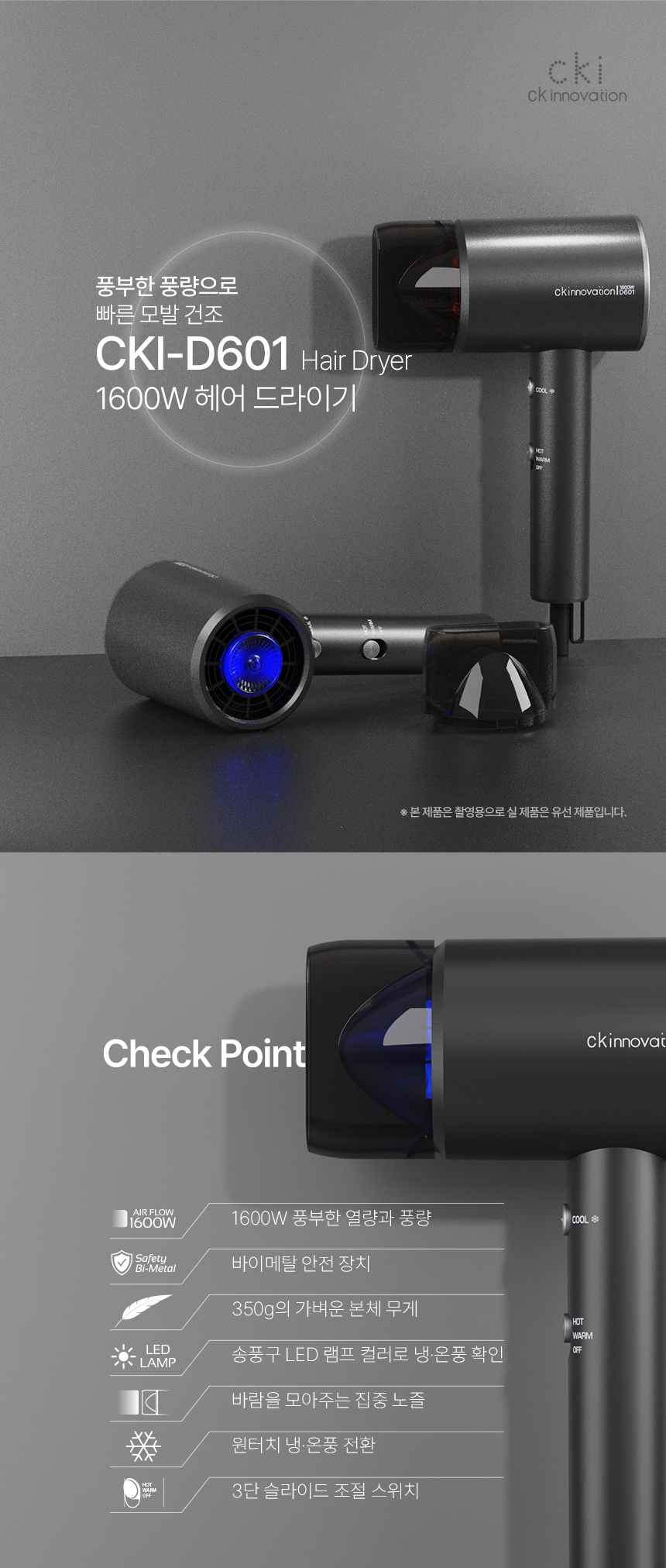 CKI-D601 다크그레이 실버 1600W 고풍량 헤어드라이기