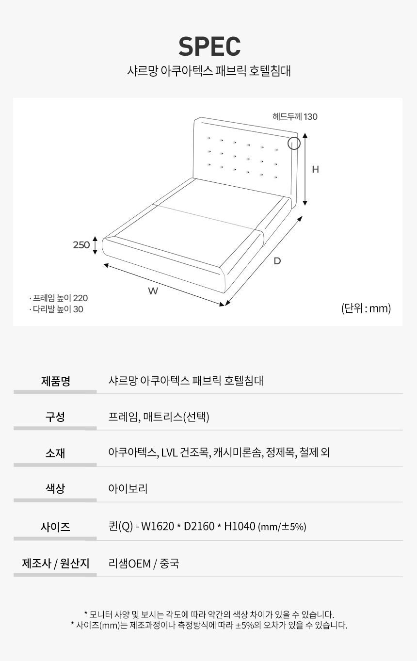 딕슨스툴 선물 // 파로마 샤르망 아쿠아텍스 패브릭 호텔침대 Q 프레임만