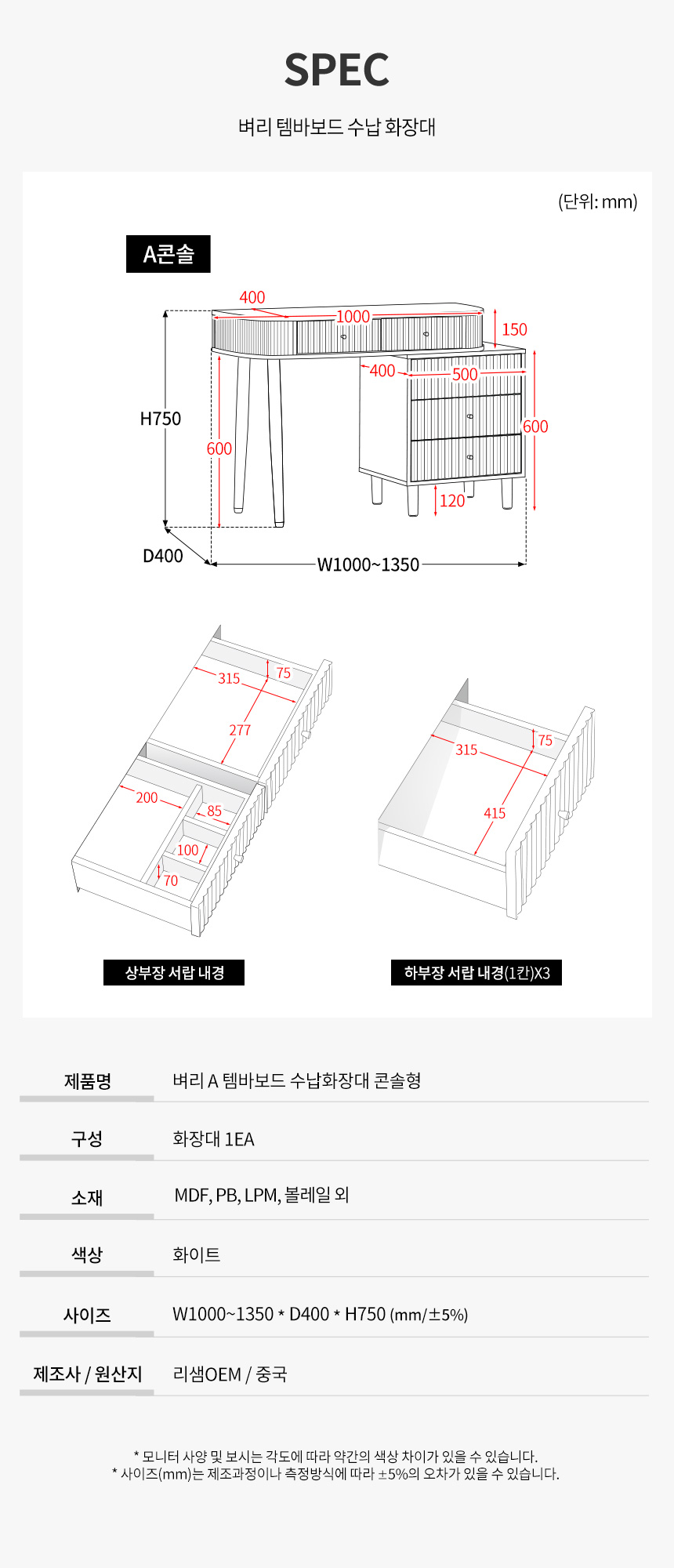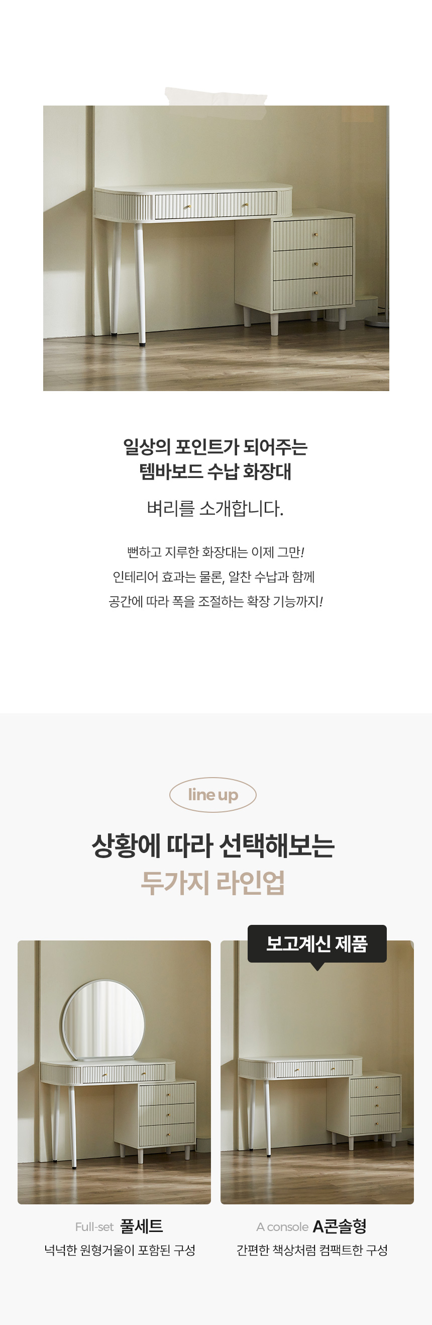 최종 구매가 130,500원 // 파로마 벼리A 템바보드 수납화장대 콘솔형