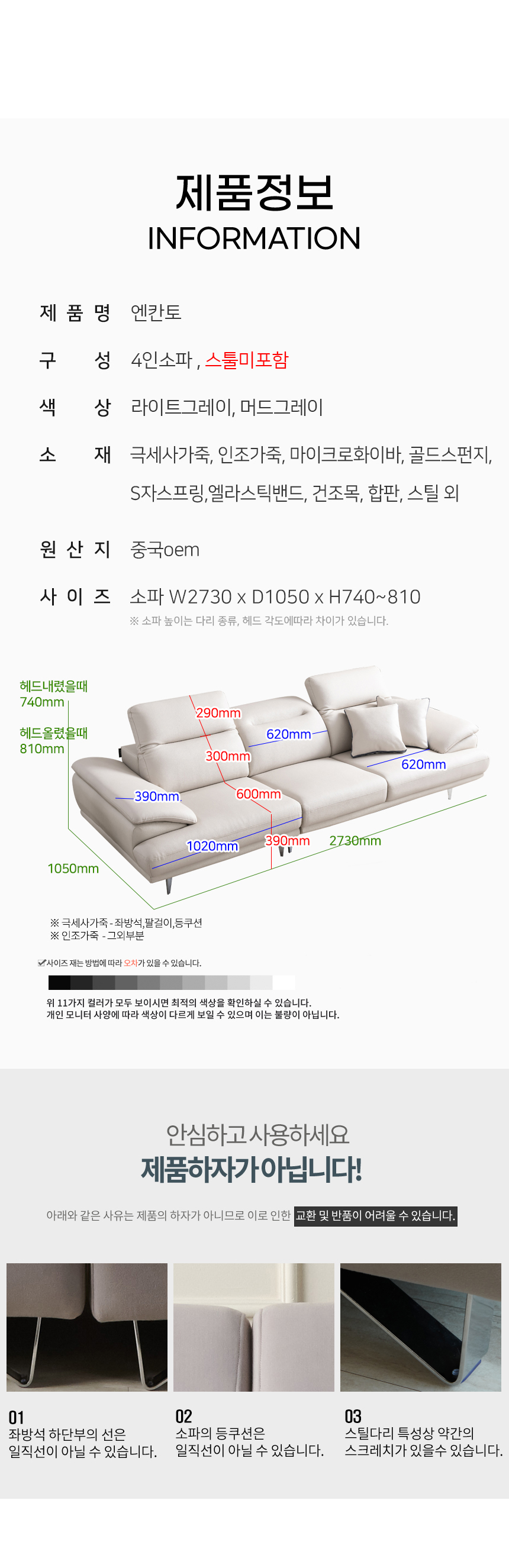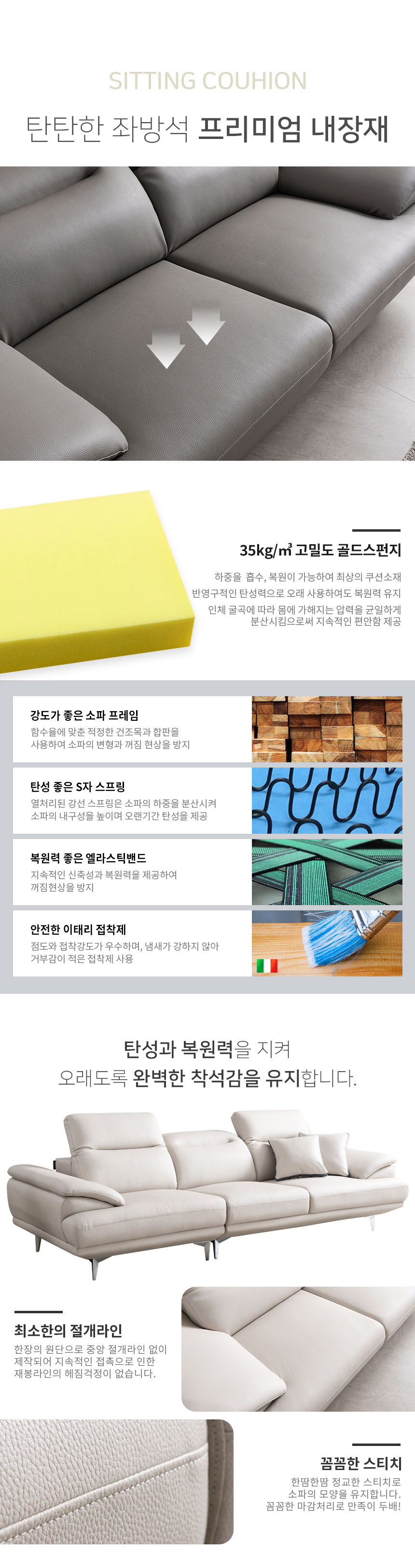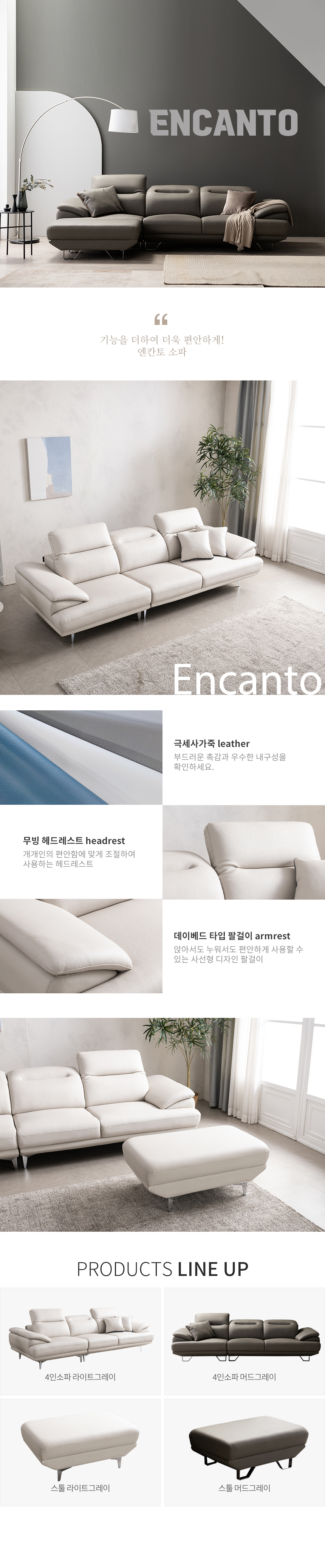 우아미가구 엔칸토 4인 무빙헤드 가죽 소파 2color