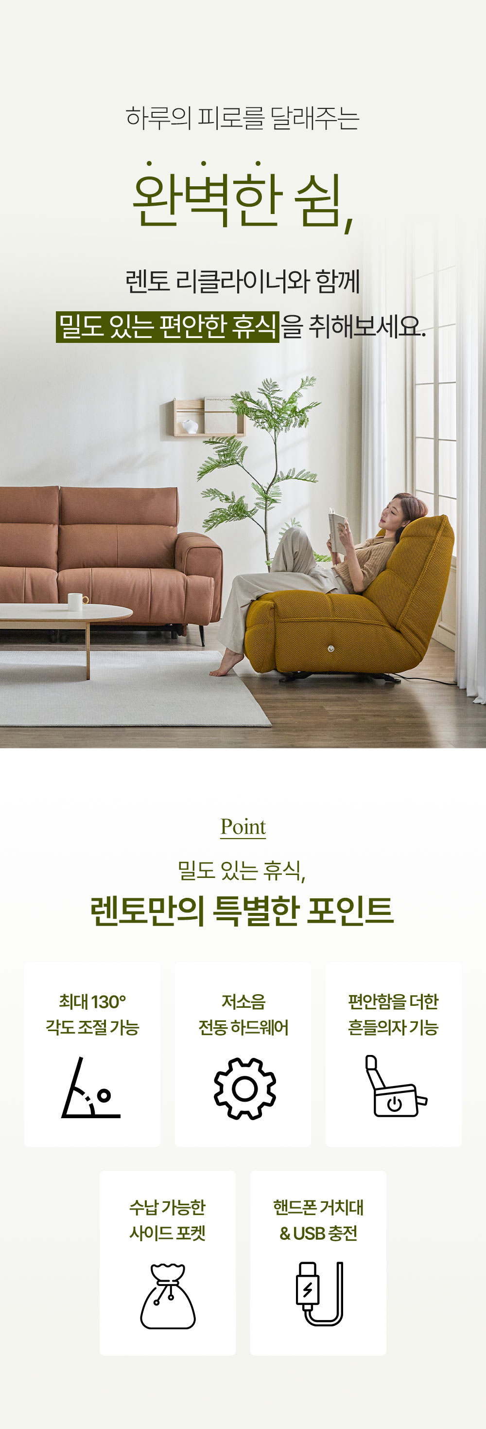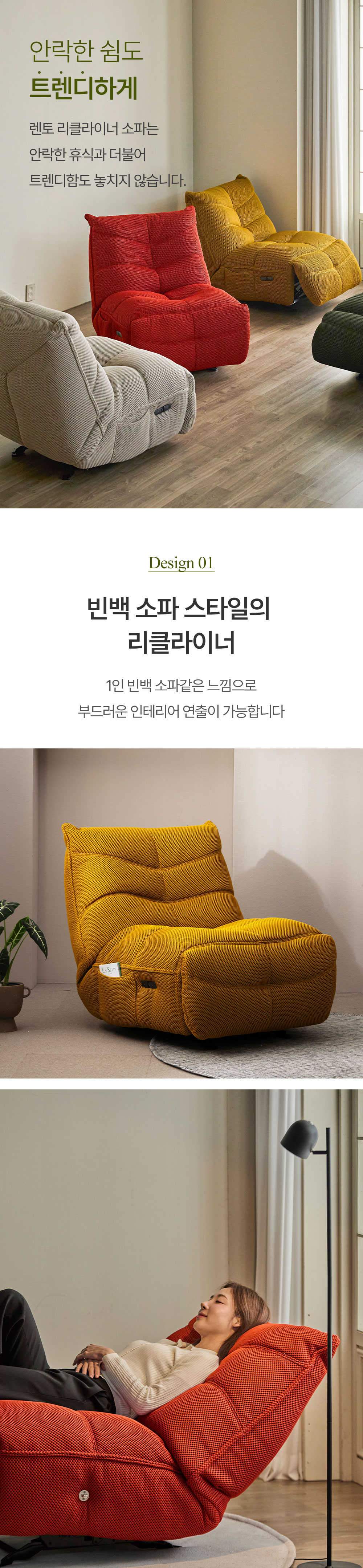 헤르짐머 렌토 1인용 전동 리클라이너 흔들의자 패브릭 싱글 소파 5COLOR