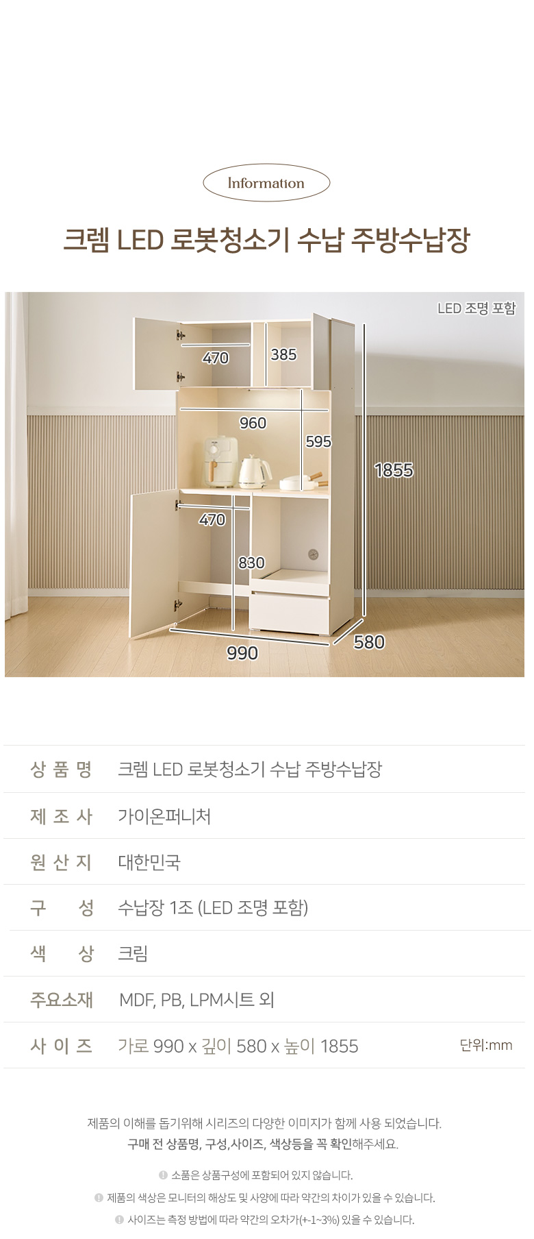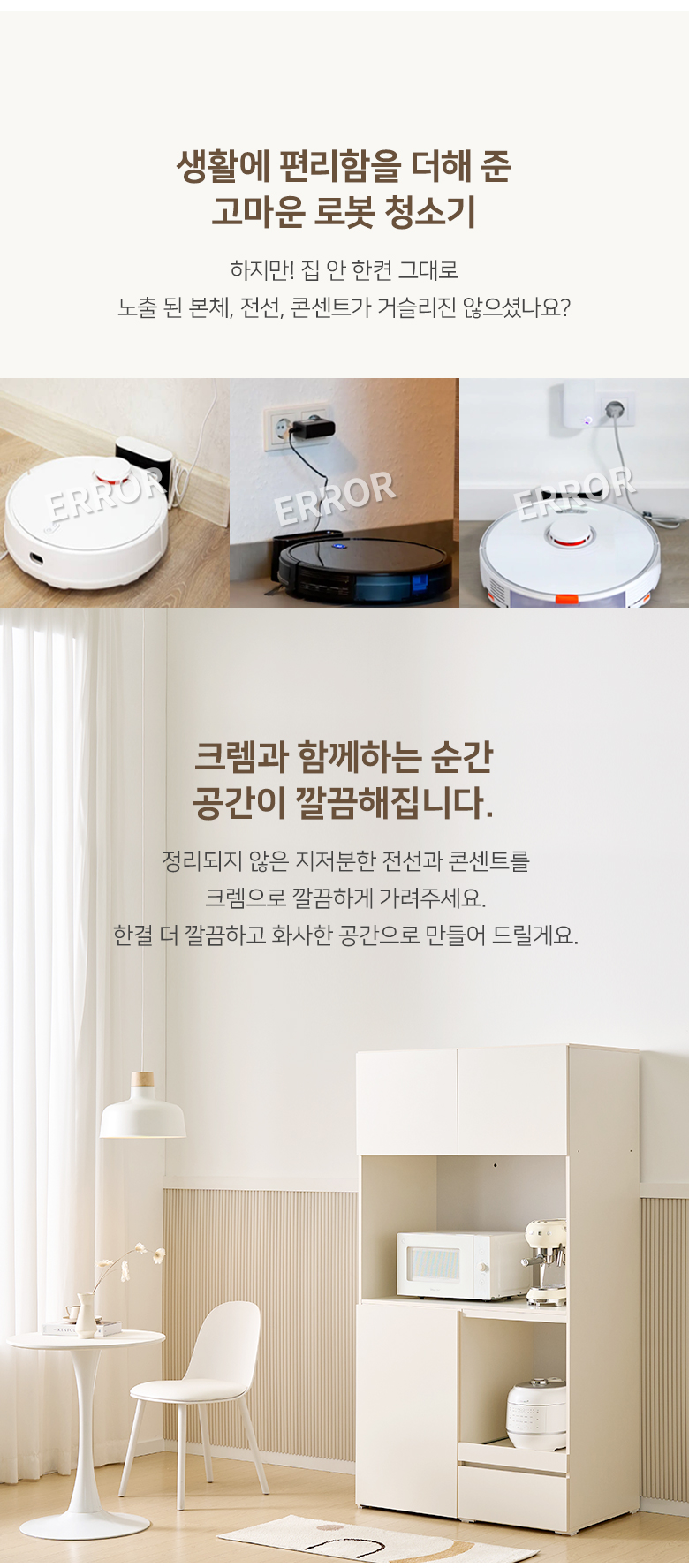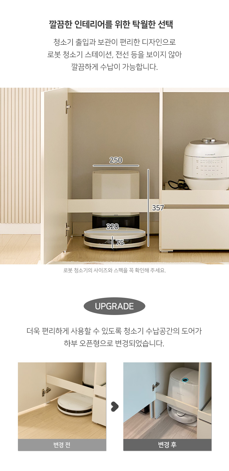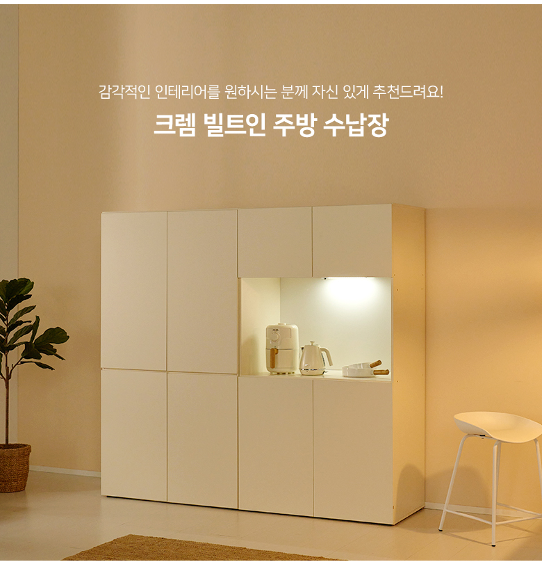 크렘 LED 로봇청소기 수납 주방수납장