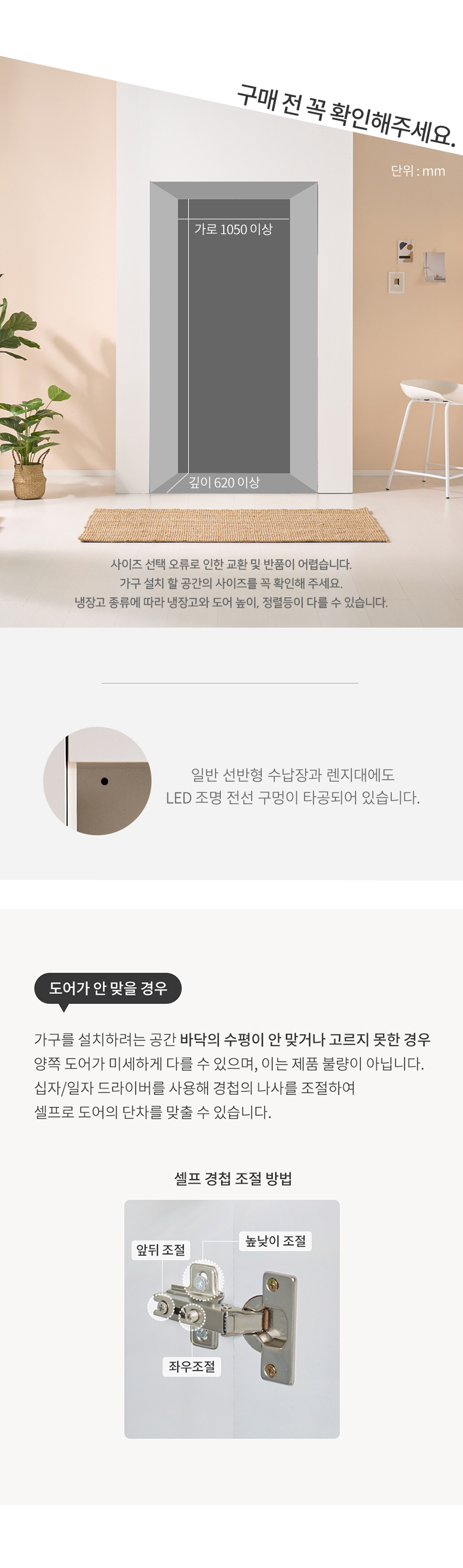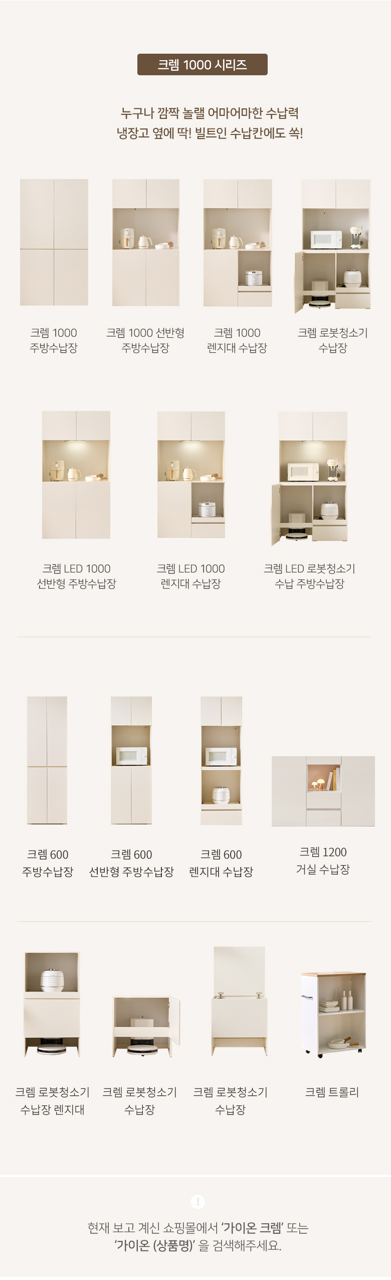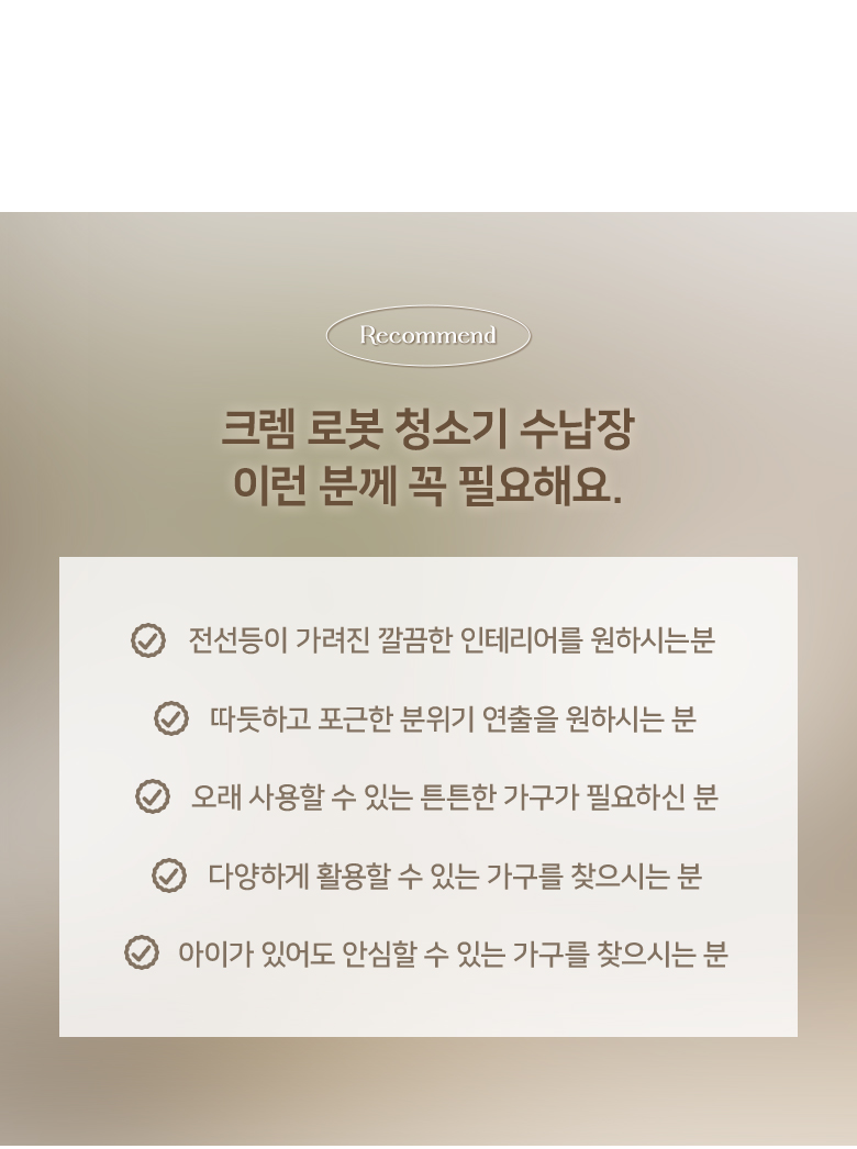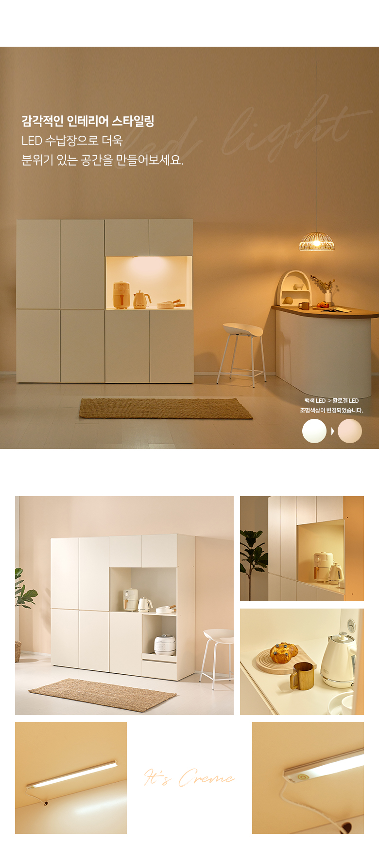 크렘 LED 로봇청소기 수납 주방수납장