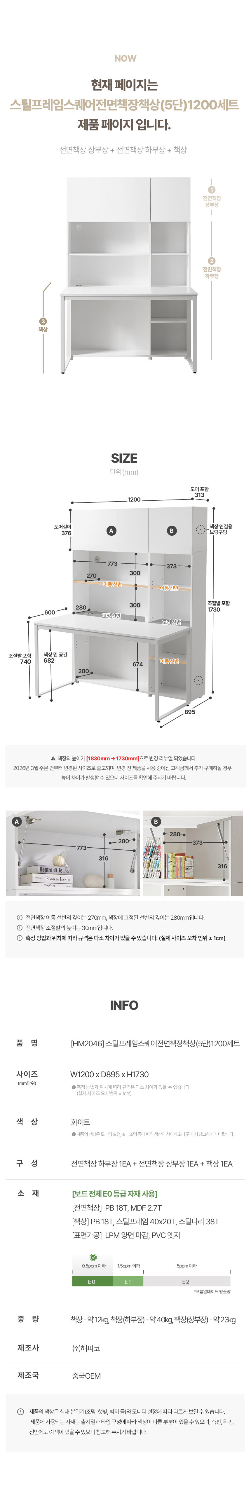 E0자재 HM2046 스퀘어 책장책상세트 5단 1200-DVX