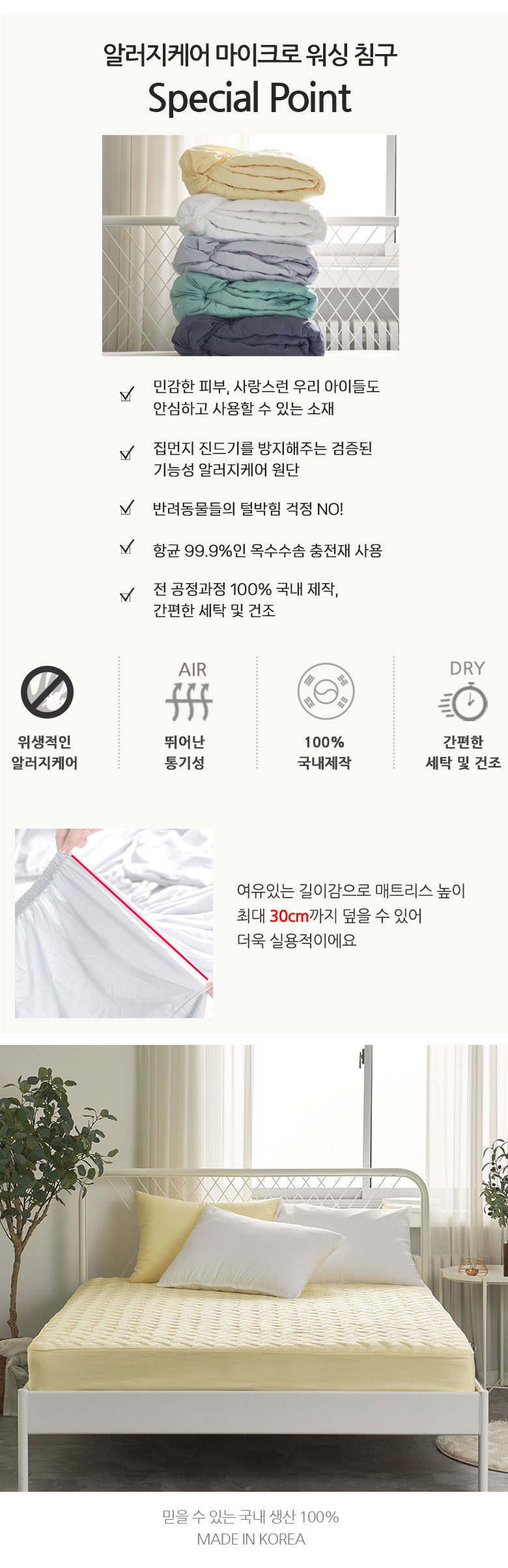 레아 마이크로워싱 알러지케어 누빔매트리스커버 Q 레몬