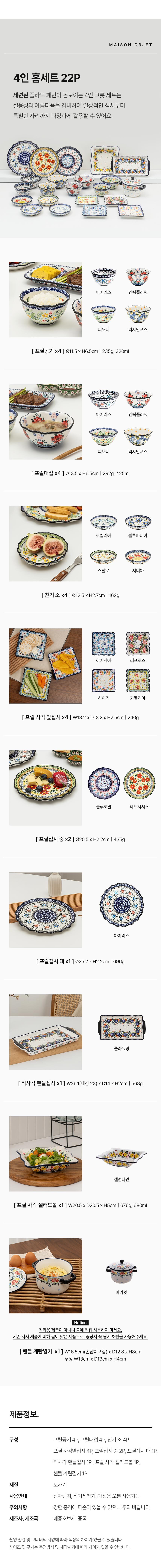 프라카 폴란드풍 도자기 4인 홈세트 22P