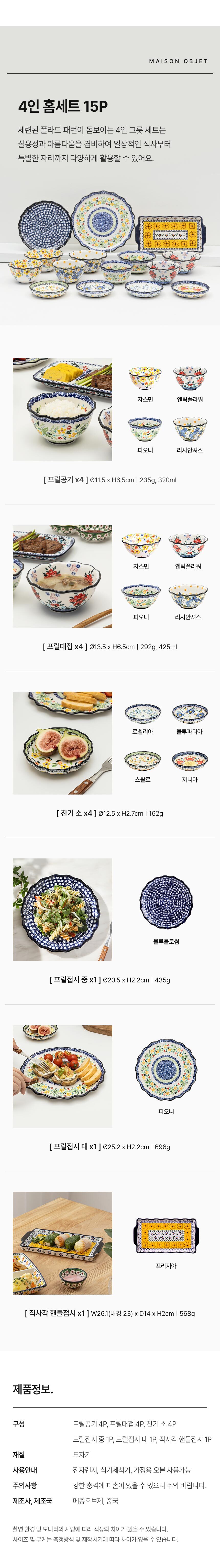 [특가 ~2/9]프라카 폴란드풍 도자기 4인 홈세트 15P