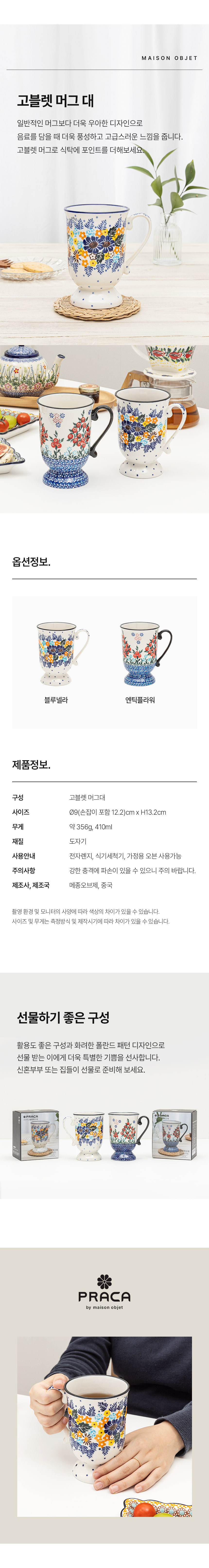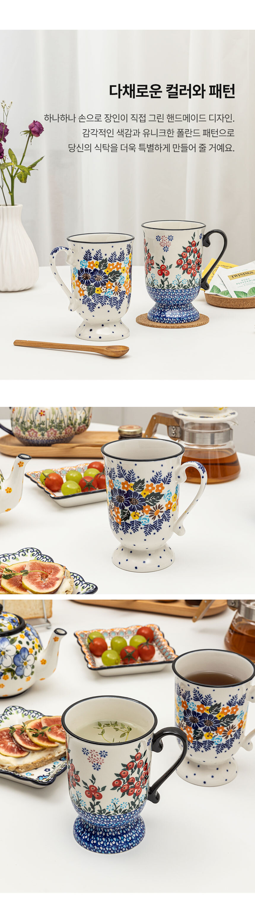 프라카 폴란드풍 도자기 고블렛 머그 대 2p