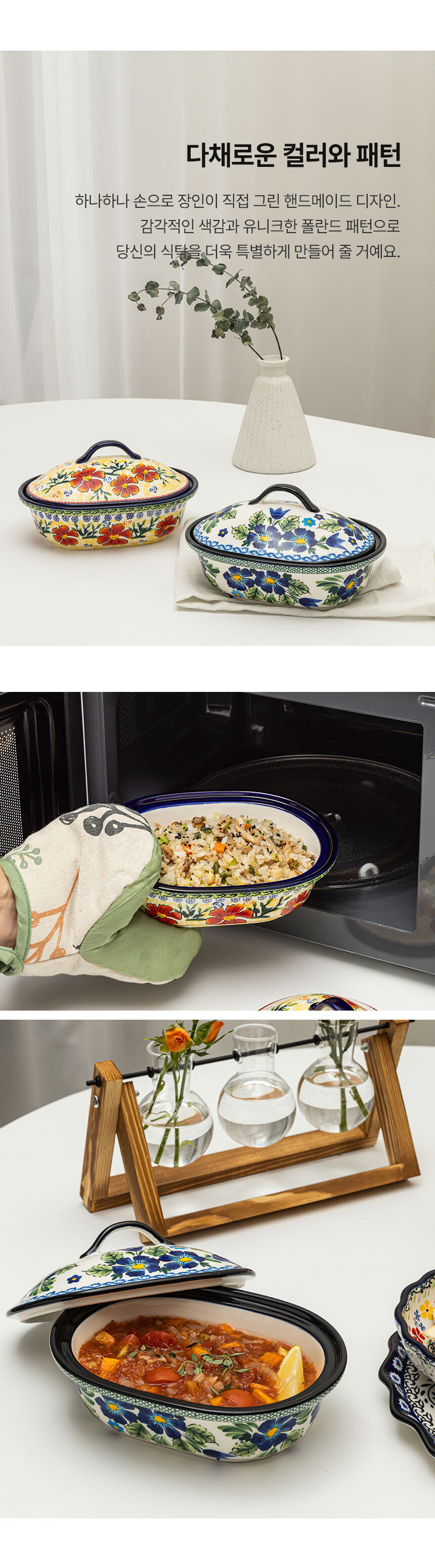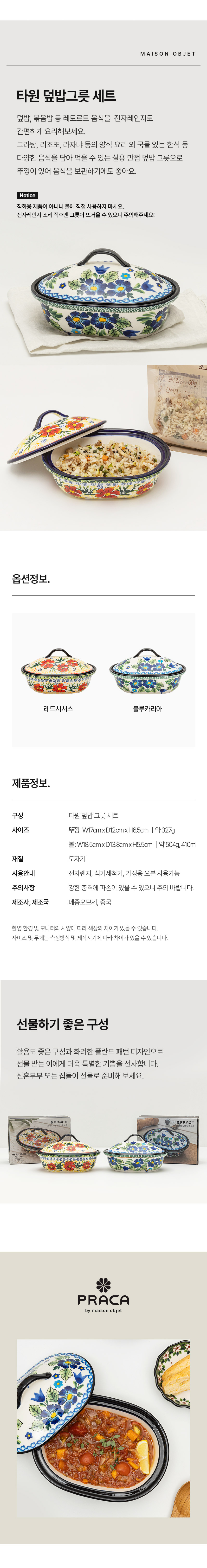 프라카 폴란드풍 도자기 타원 덮밥그릇 세트