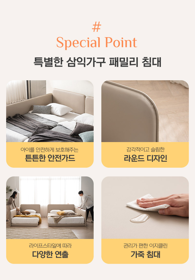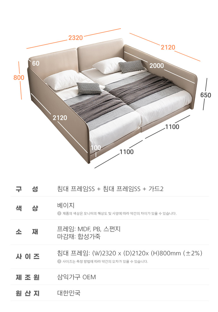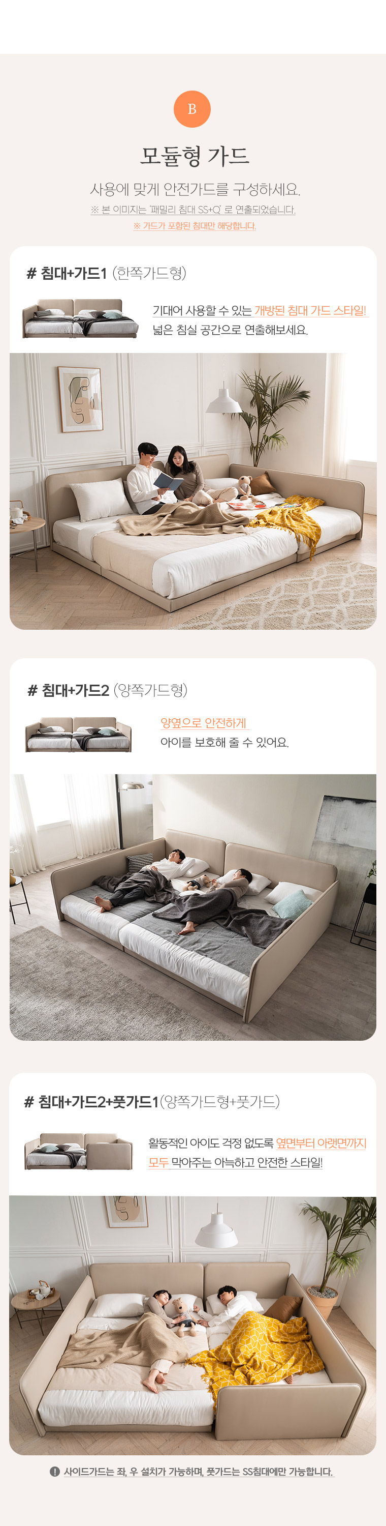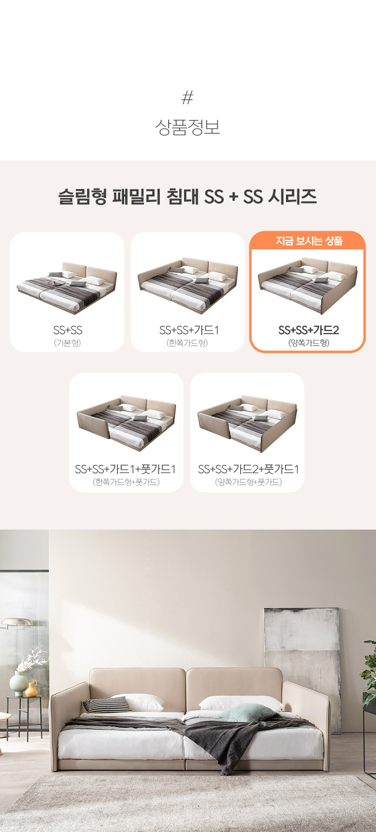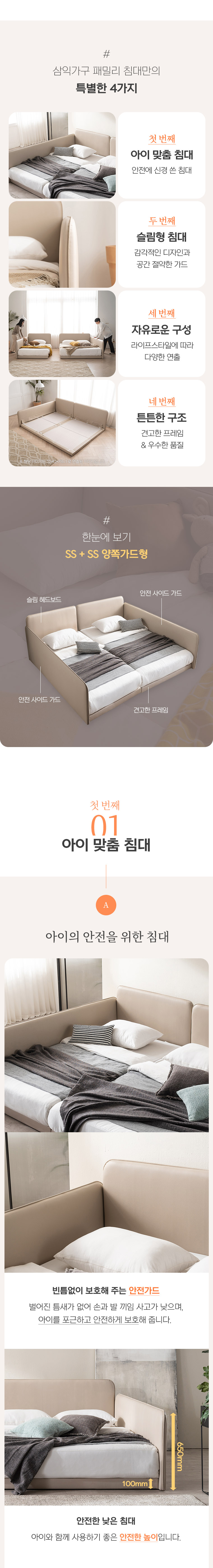 삼익가구 루시 슬림형 저상형 패밀리 침대 SS+SS(매트제외)+가드2