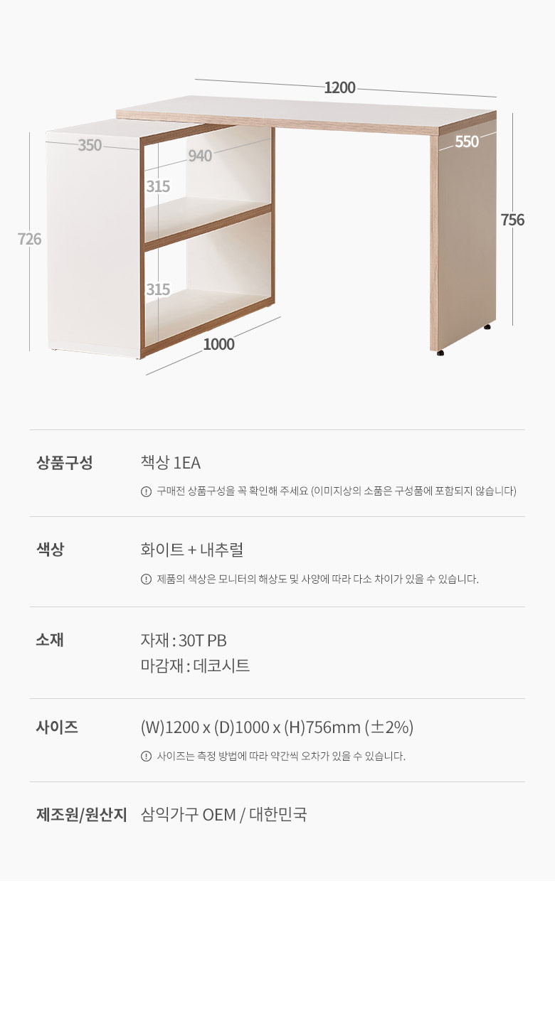 삼익가구 본티 1200 와이드 데스크 책상 테이블