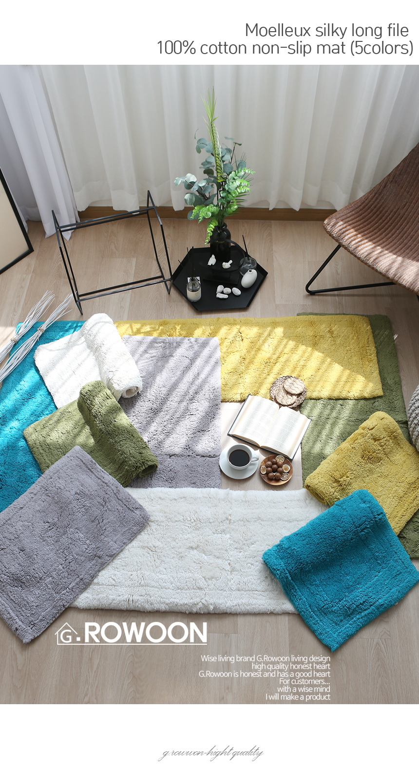 [ 실크터치감 / 100%순면 제작 / 롱파일 제작 폭신한 쿠션감 / 뛰어난 수분 흡수력 / 침실 쇼파 욕실 현관 다용도 매트 / 공간업그레이드 인테리어 매트]
