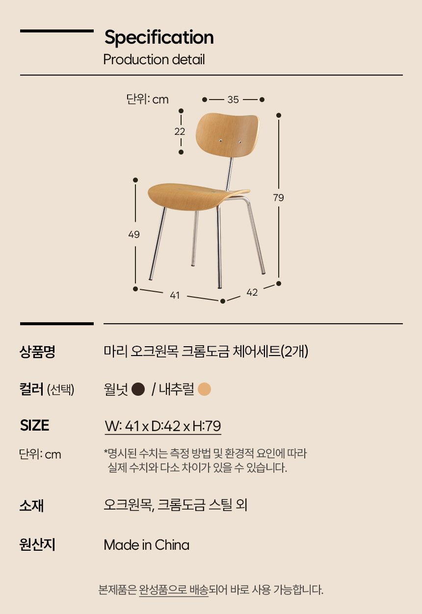 마리 오크원목 크롬도금 디자인 체어세트(2개)
