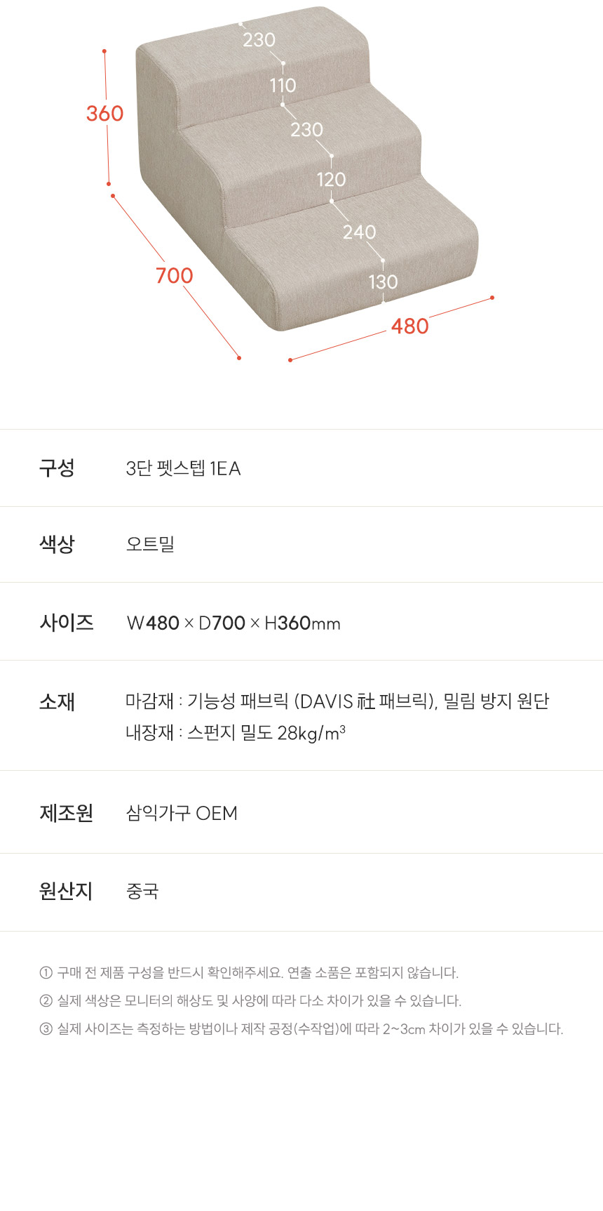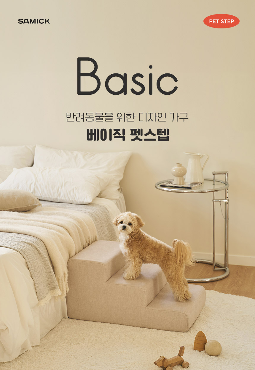 삼익가구 베이직 와이드 논슬립 펫스텝 3단 강아지 계단