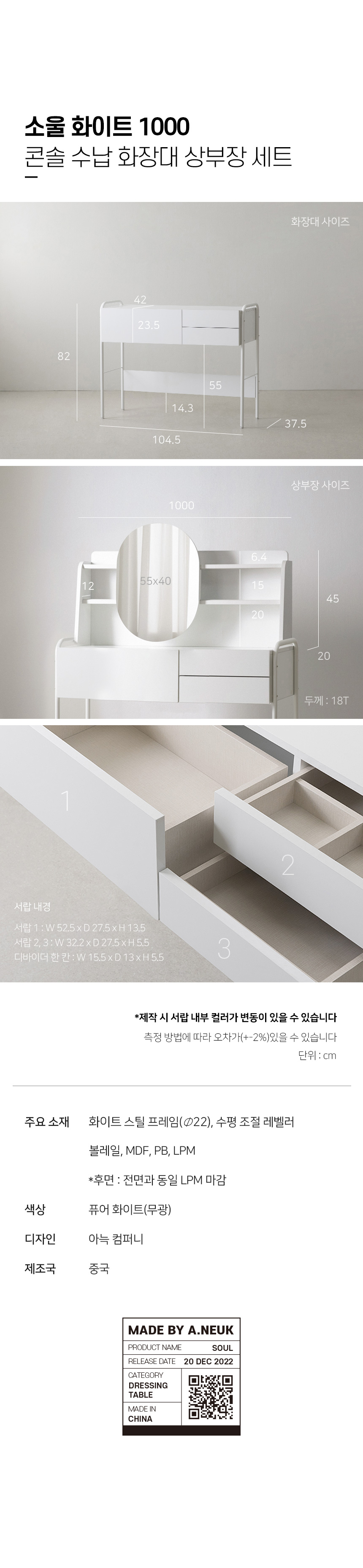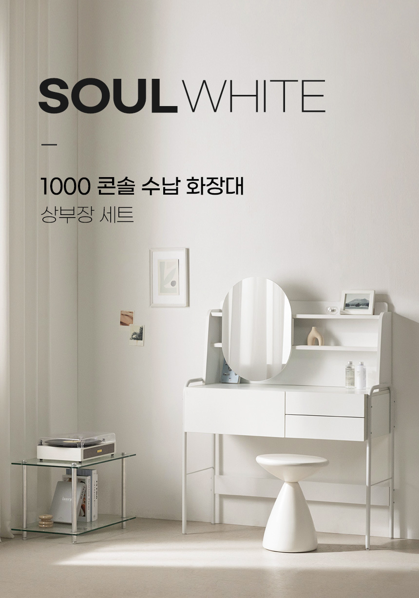 아늑 소울 화이트 1000 콘솔 수납 화장대 상부장세트