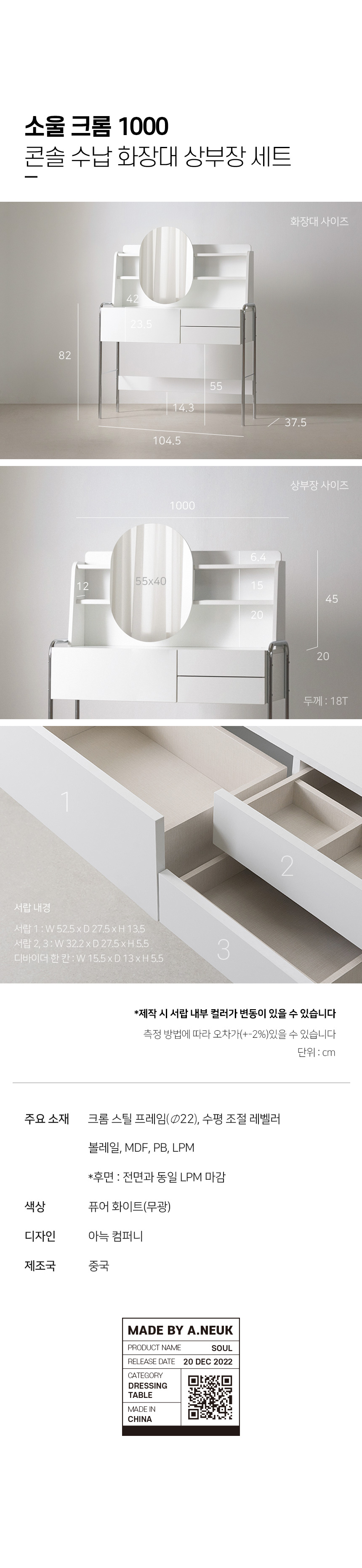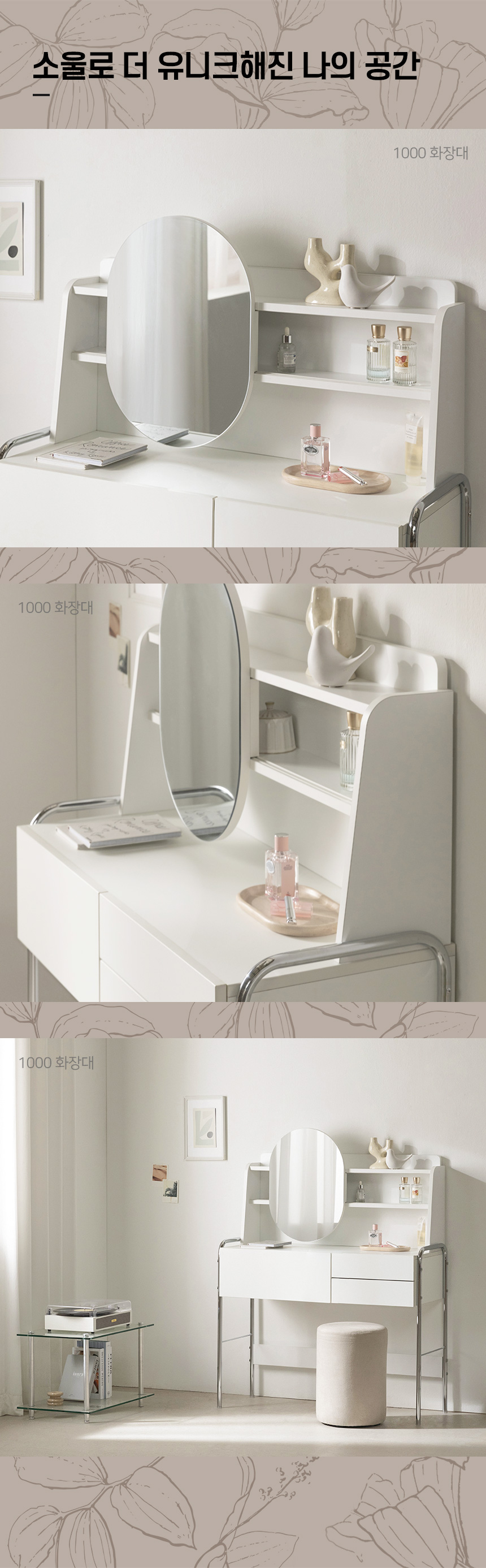 아늑 소울 크롬 1000 콘솔 수납 화장대 상부장세트