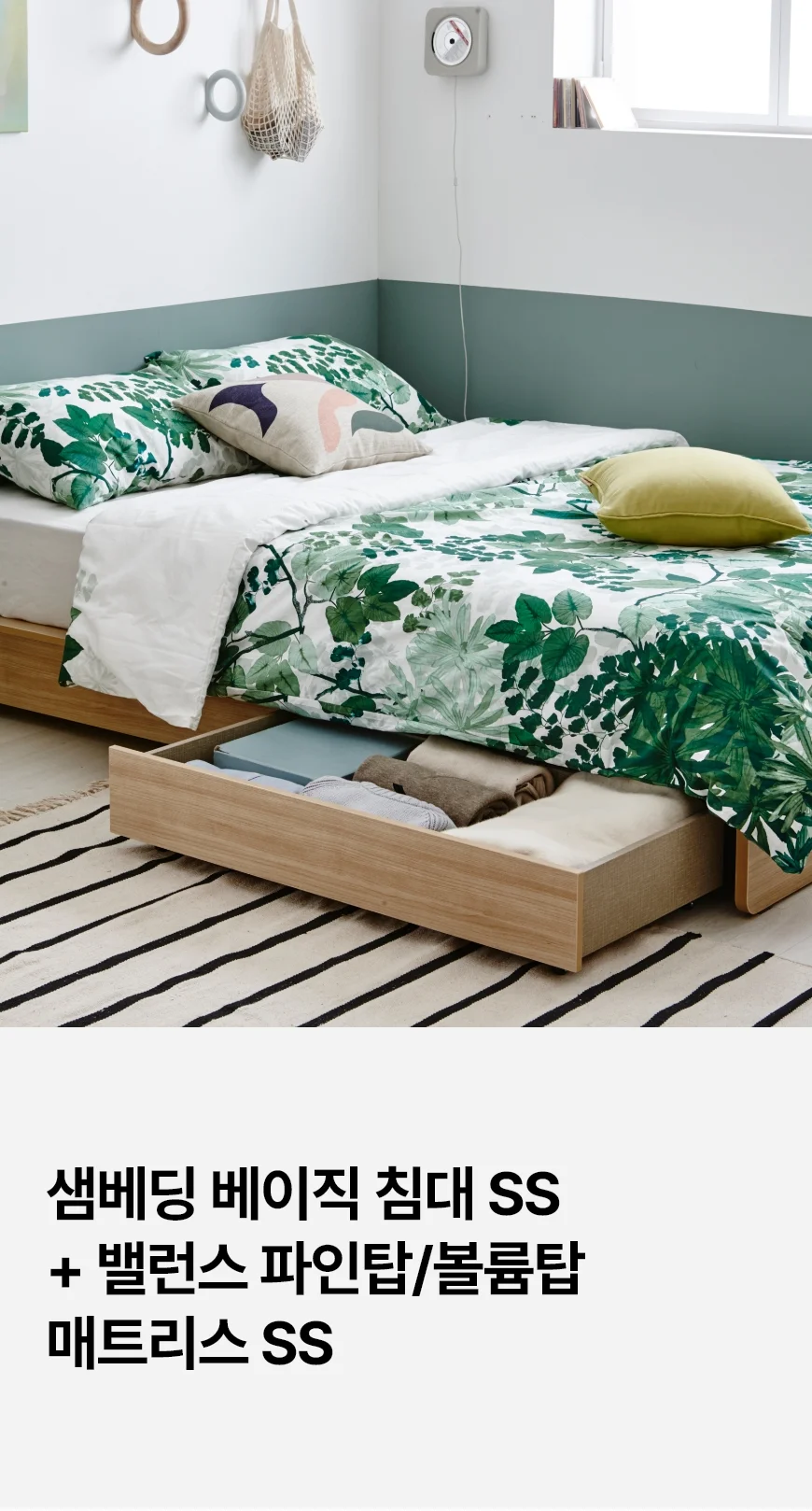 샘베딩 베이직 침대SS (색상/하부서랍 선택) + 밸런스 매트리스SS (2종)
