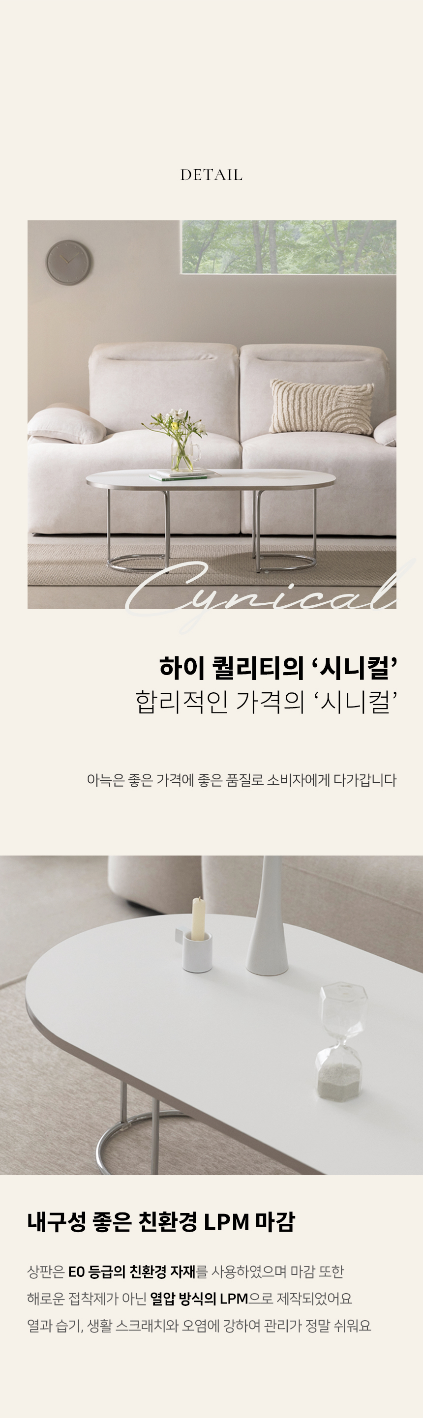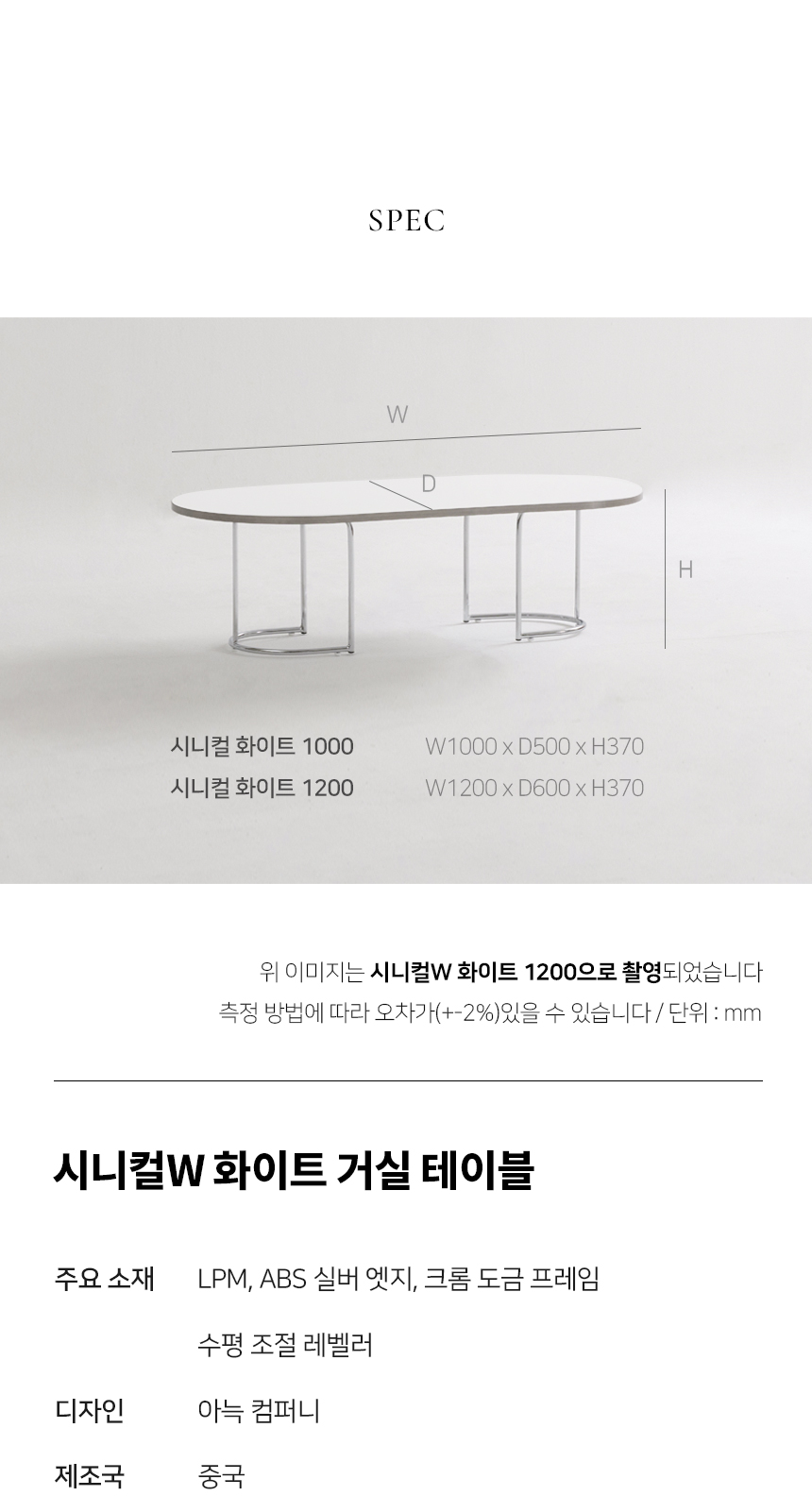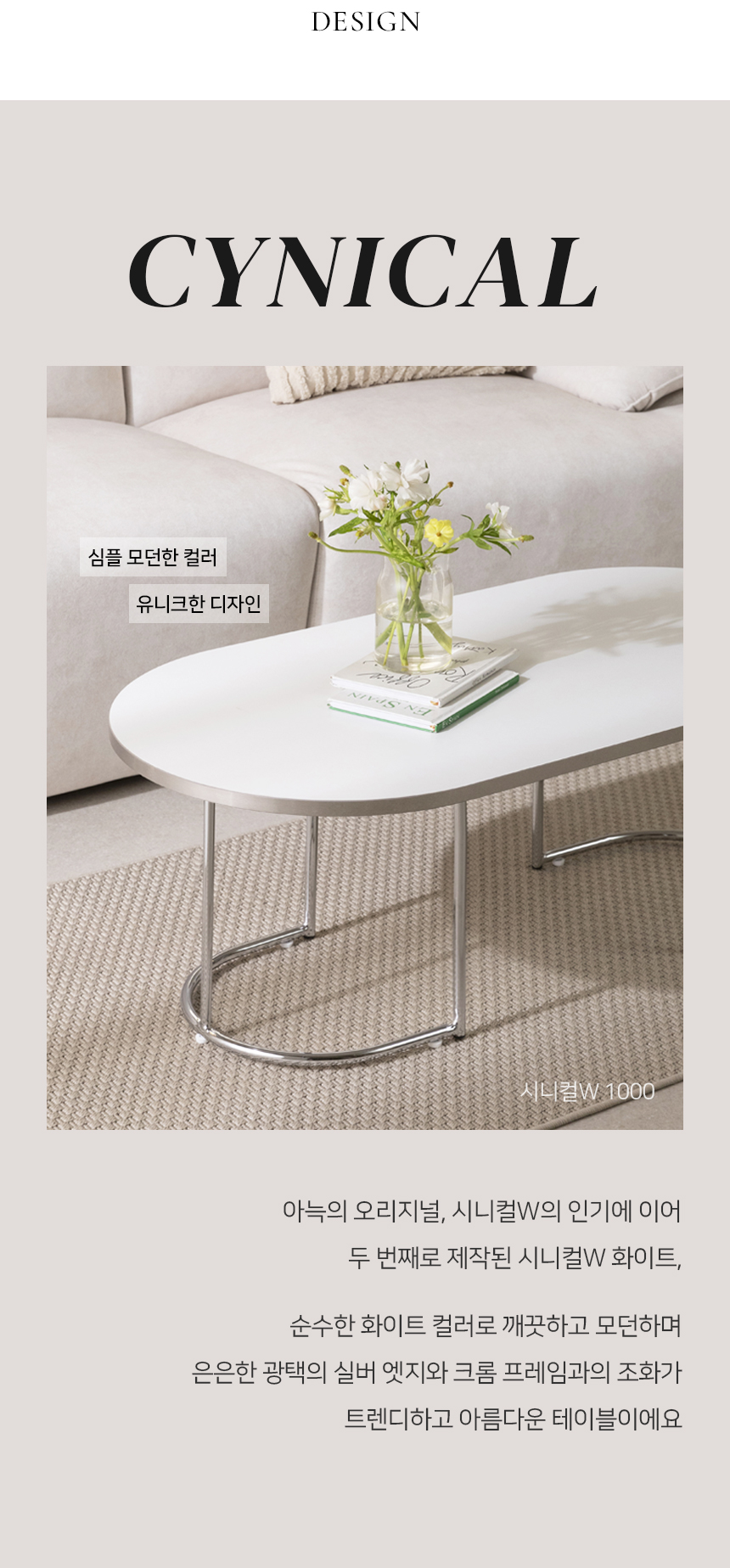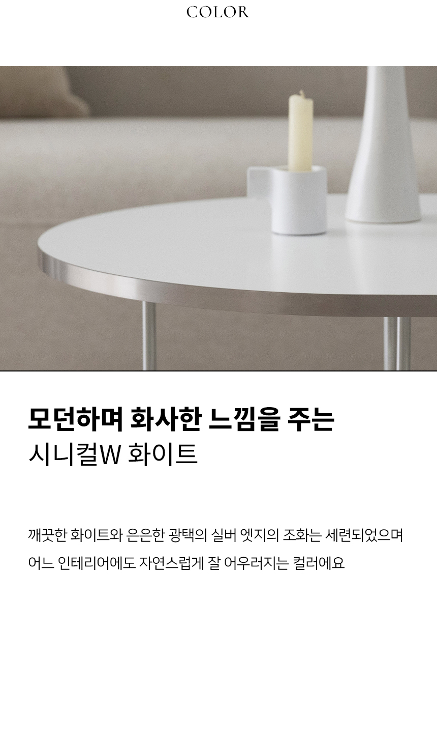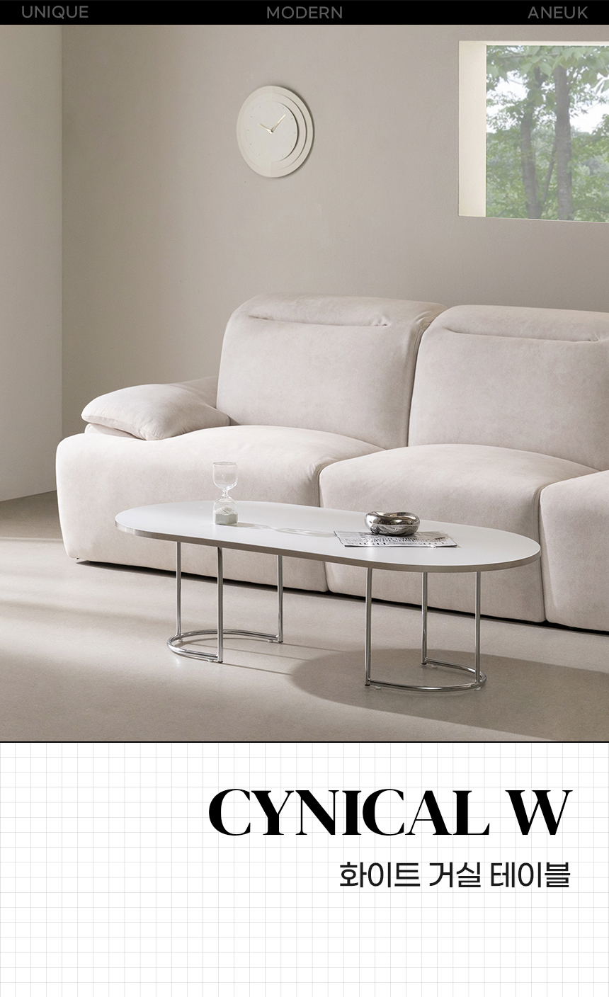 아늑 시니컬W 1200 화이트 거실 테이블/원형 소파 테이블