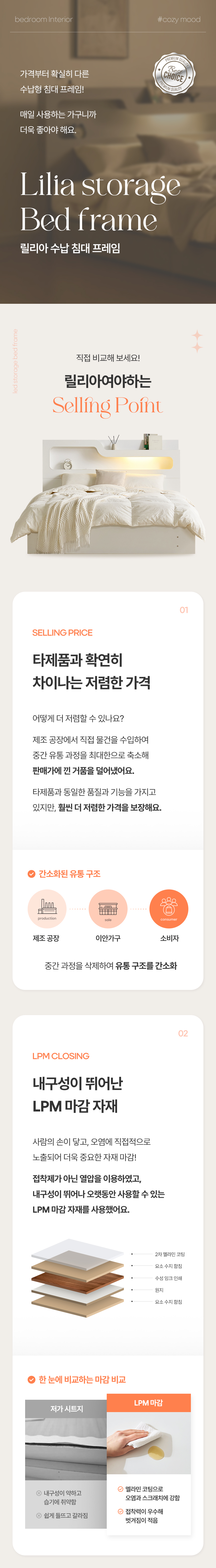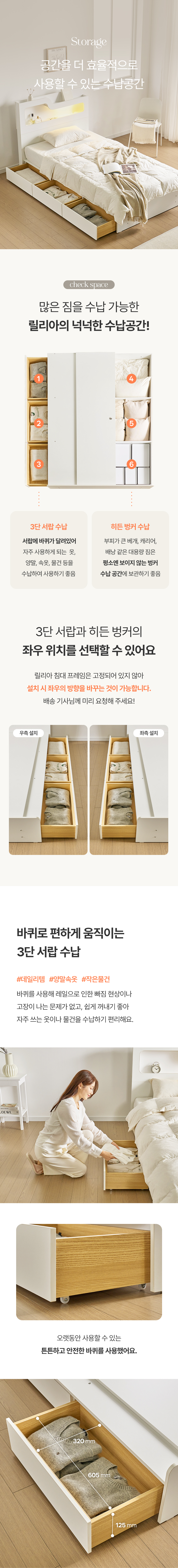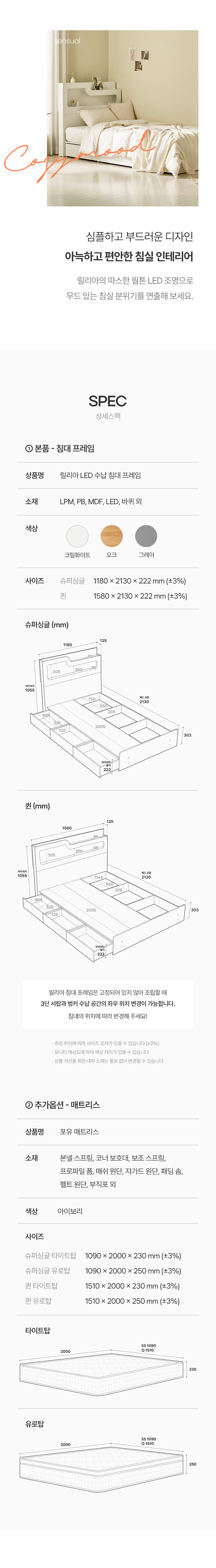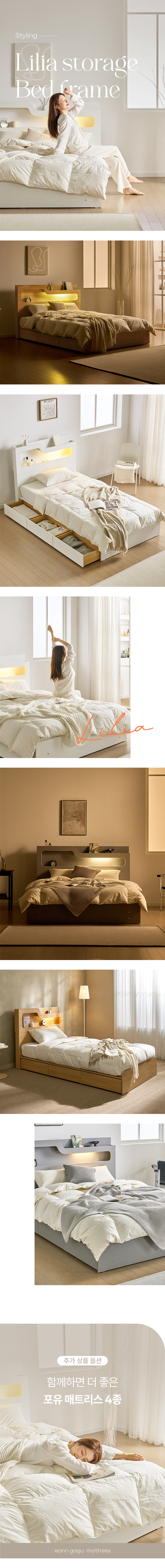 릴리아 LED 수면 서랍 수납침대 (SS/Q 매트선택)