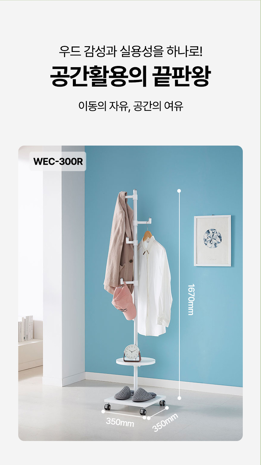 국민튼튼 이동식 원목 미니 행거 WEC-300R 우드 감성 스탠드 2단