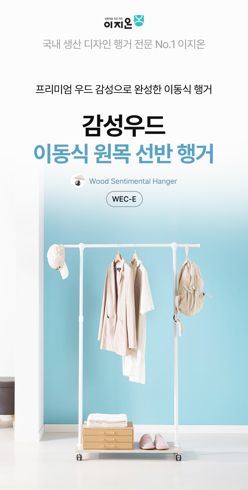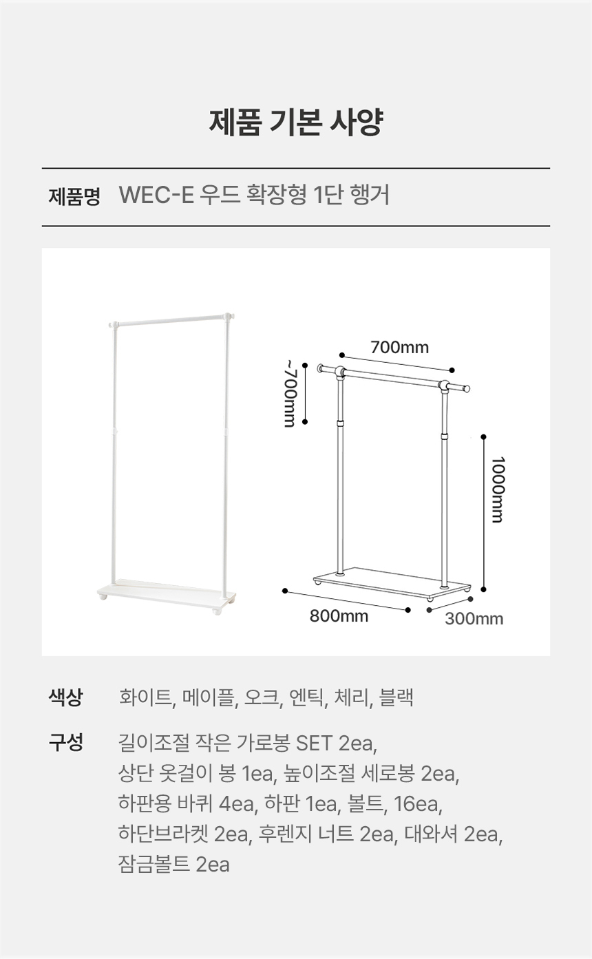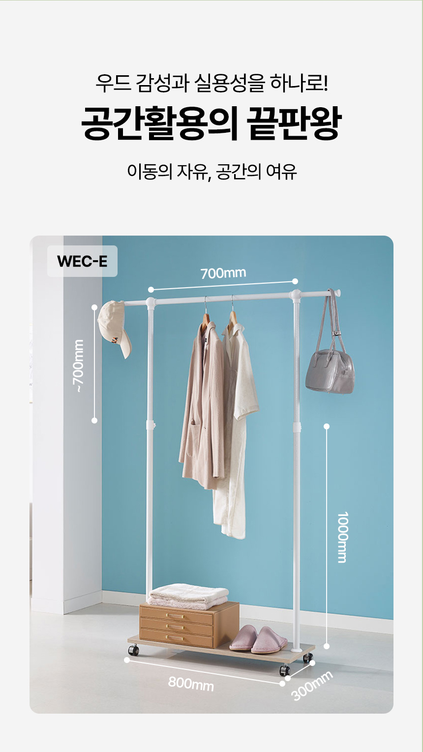 국민튼튼 이동식 원목 선반 행거 WEC-E 우드 감성 스탠드 1단