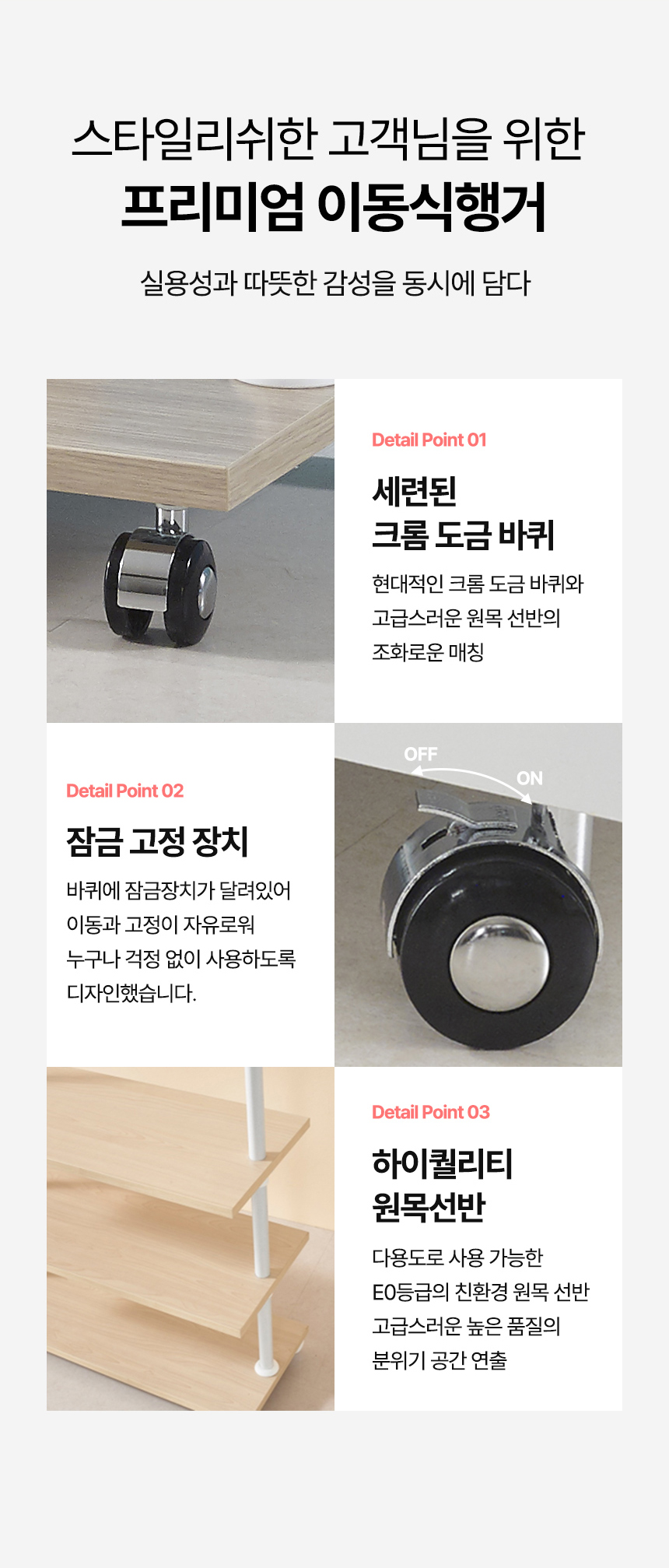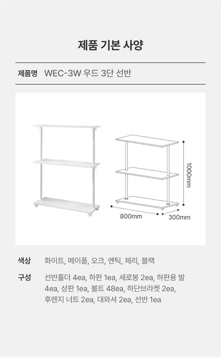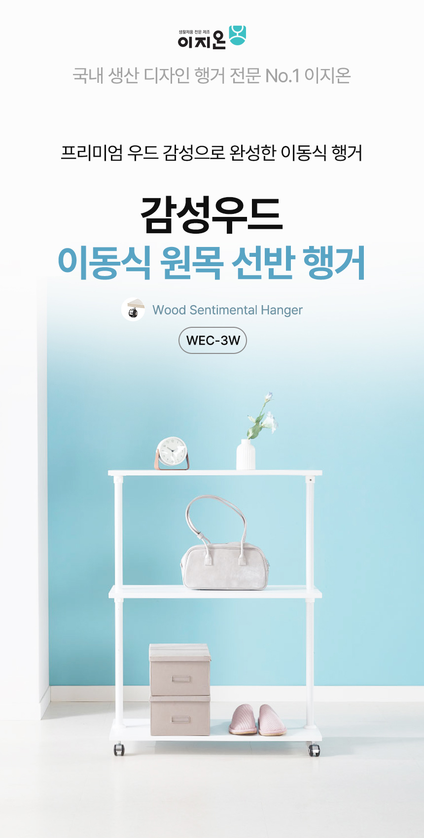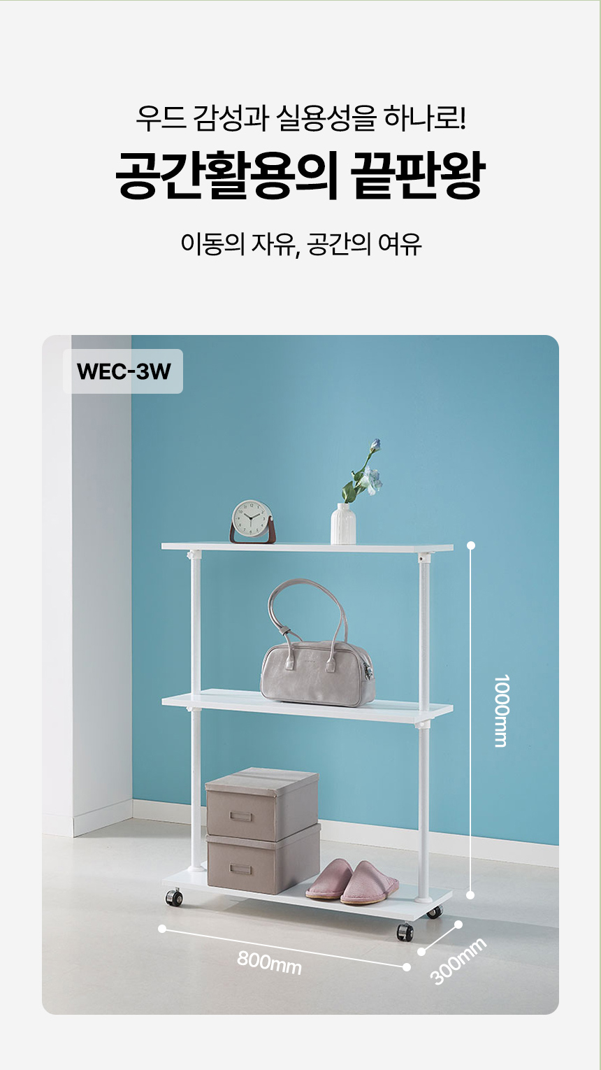 국민튼튼 이동식 원목 선반 WEC-3W 우드 감성 스탠드 3단 수납