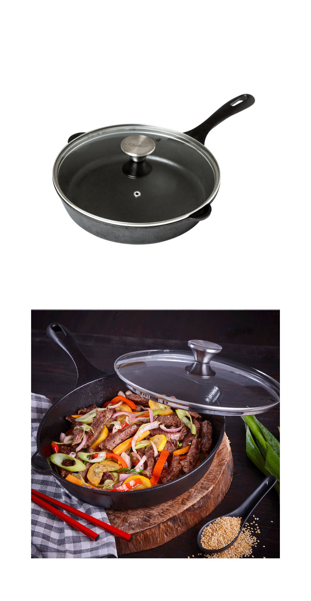 빅토리아 주물 에나멜 무쇠팬 유리뚜껑 25cm