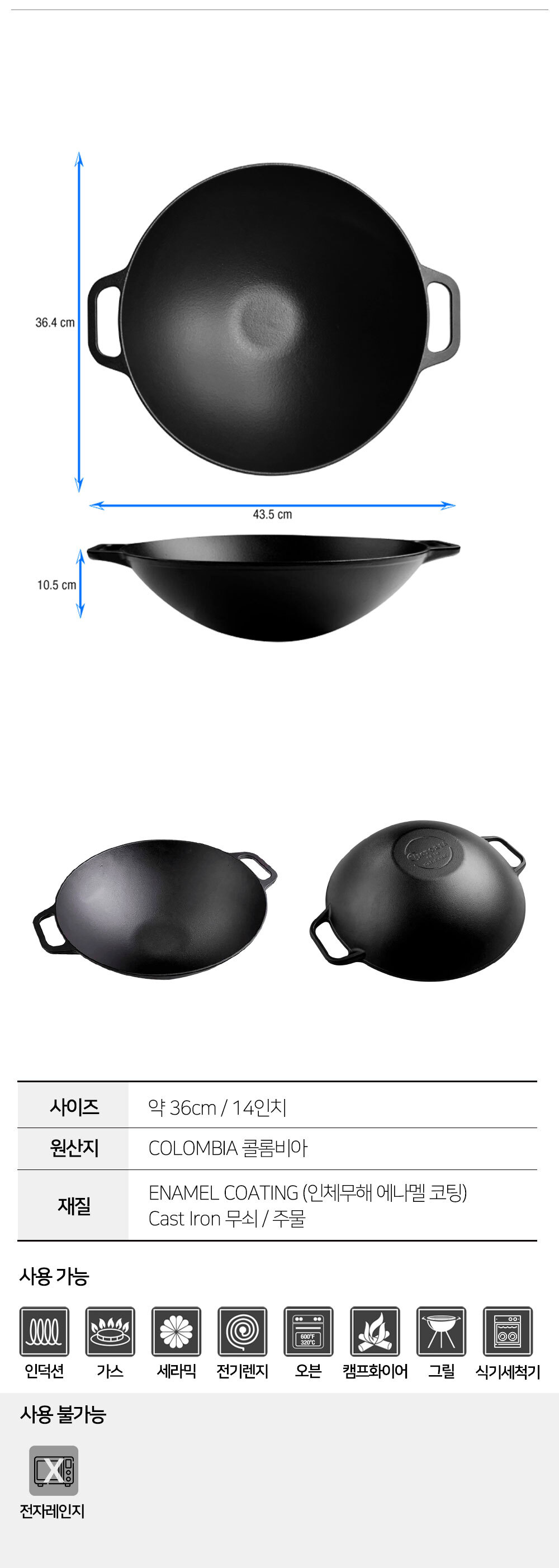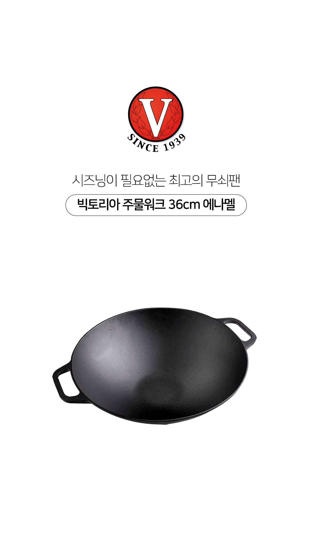 빅토리아 주물워크 에나멜 무쇠팬 궁중팬 인덕션 웍 36cm