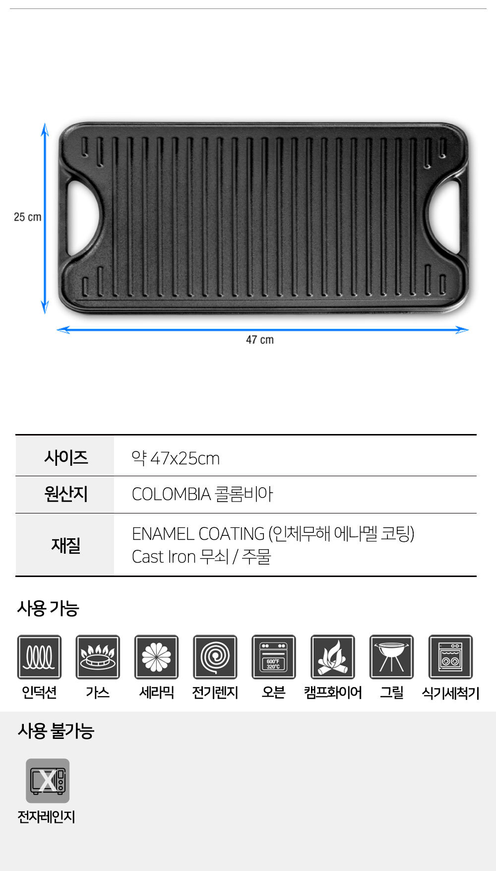 빅토리아 주물 그리들 에나멜 바베큐 캠핑 불판 무쇠그릴 47x25cm