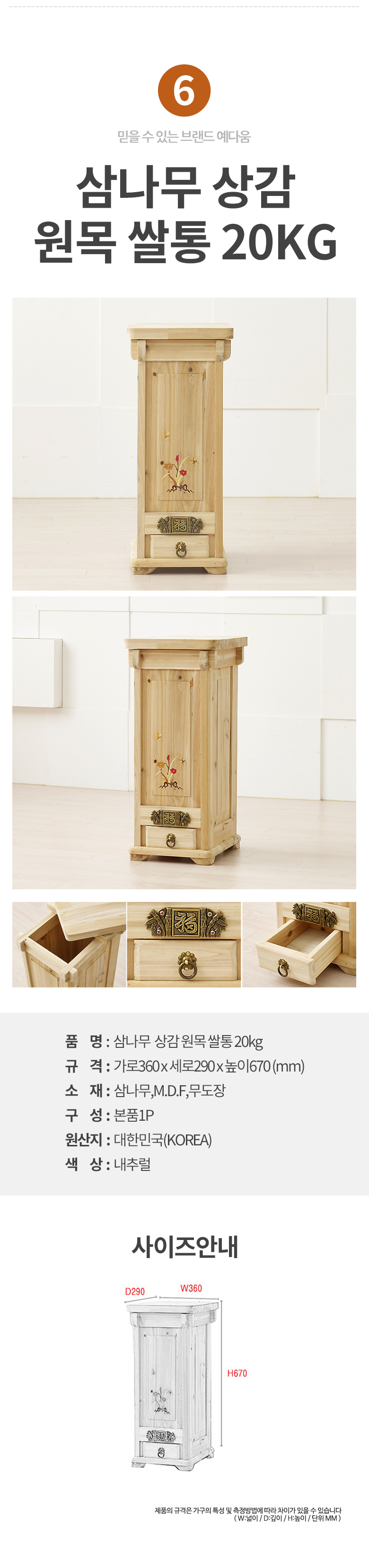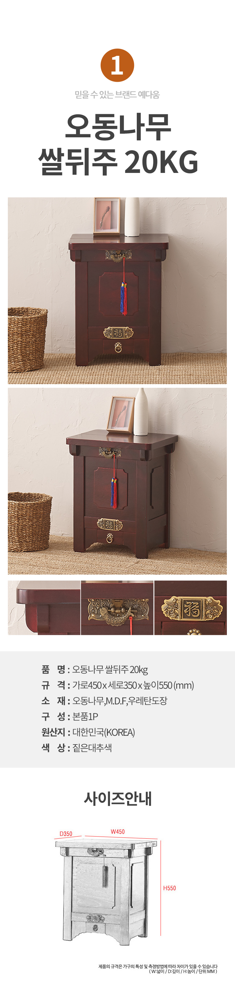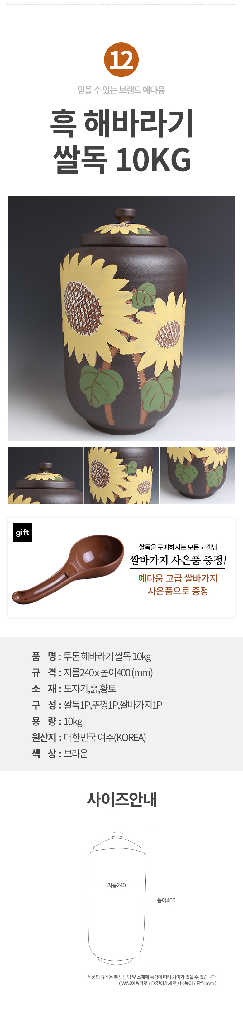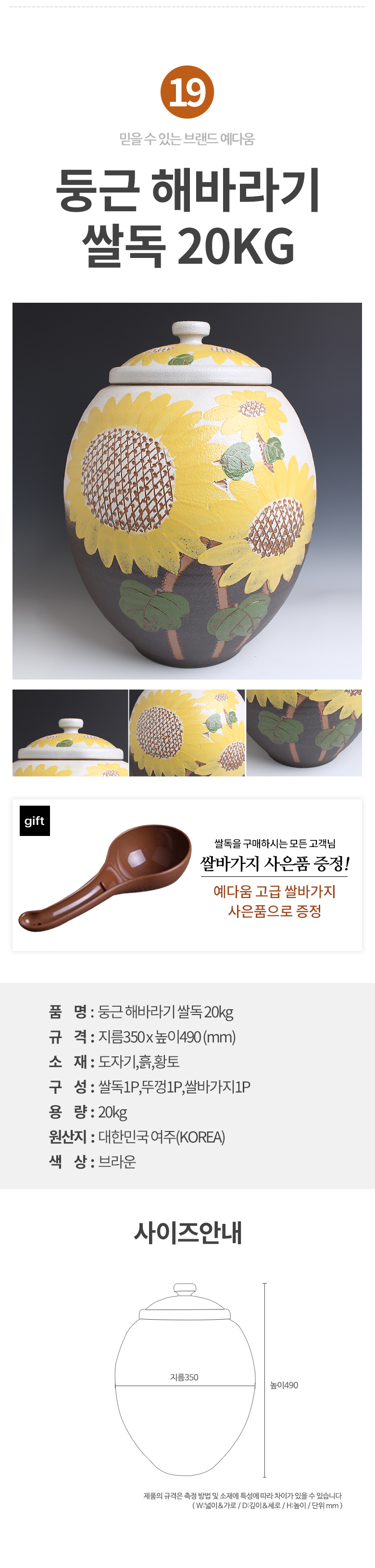 예다움 쌀통 쌀독 쌀 뒤주 보관통 항아리 20kg 10kg