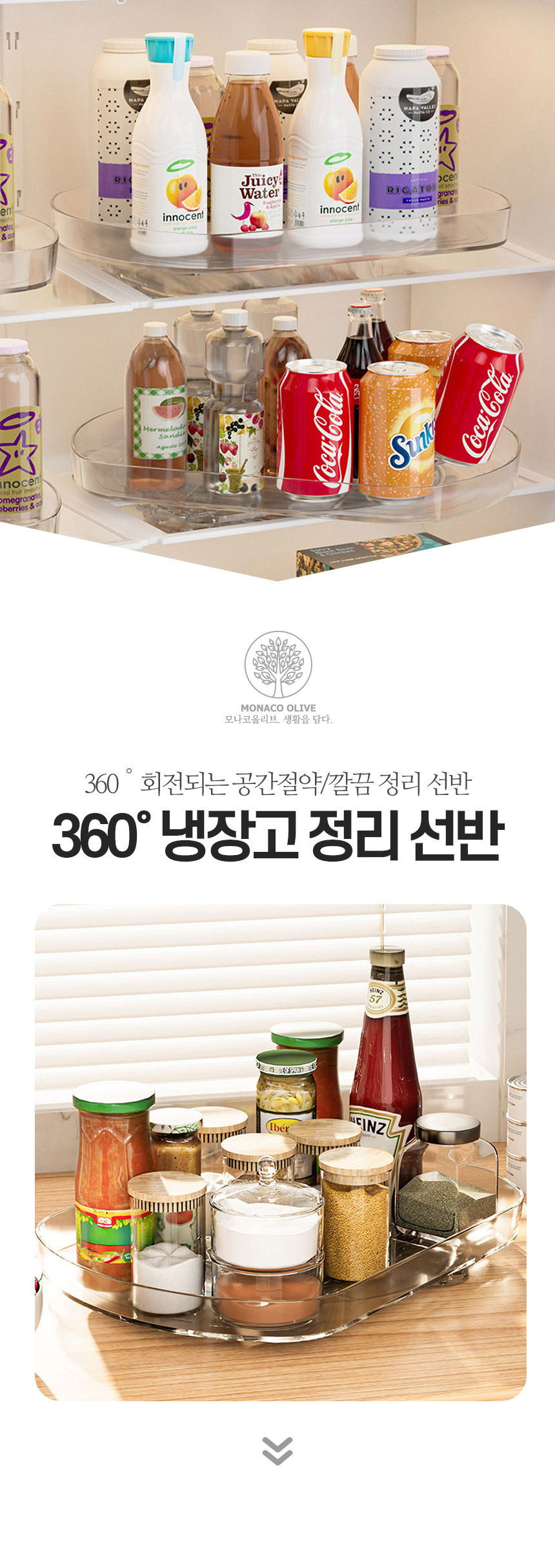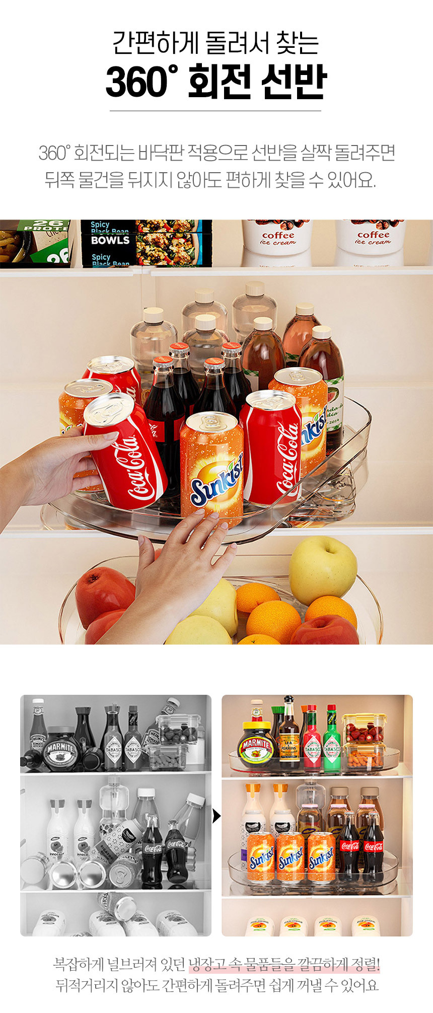 [주방평정] 360도 회전 턴테이블 냉장고 정리 선반