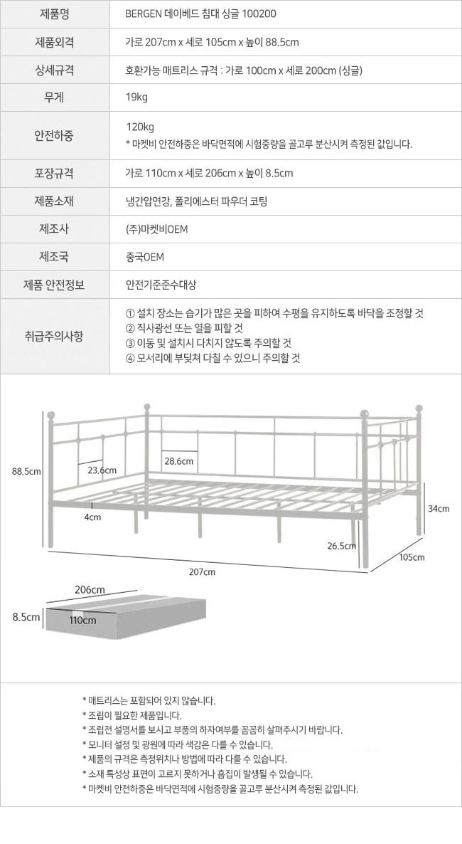 호텔라인 침대프레임 100cm 싱글침대 데이베드 MK14757