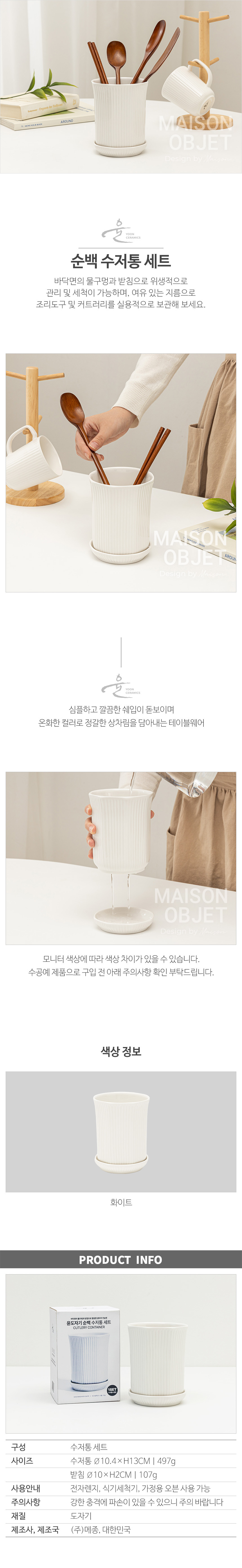 윤도자기 순백 화이트 도자기 수저통 세트