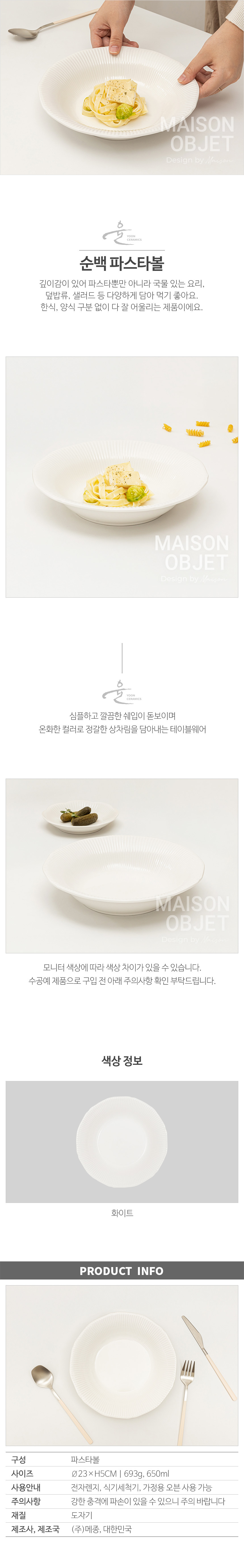 윤도자기 순백 화이트 도자기 원형 파스타볼