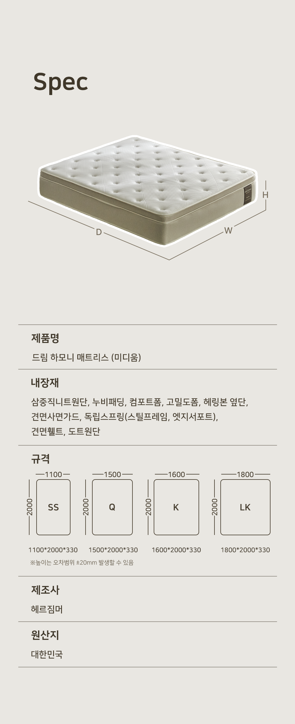 헤르짐머 드림 하모니 미디움 매트리스 (SS/Q/K/LK)