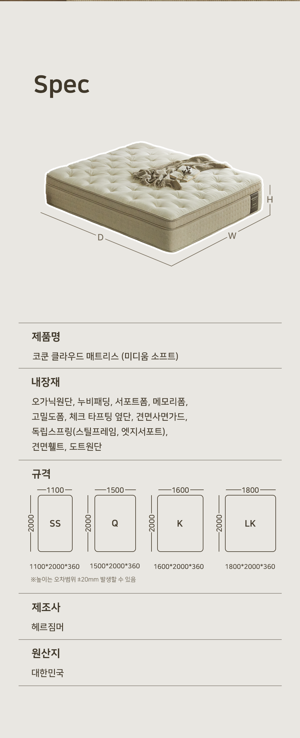 헤르짐머 코쿤 클라우드 미디움 소프트 매트리스 (SS/Q/K/LK)