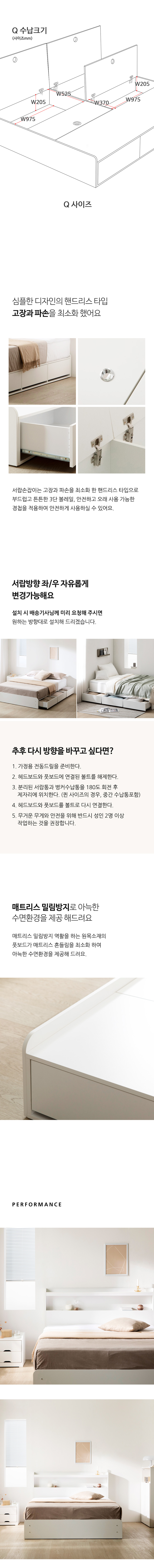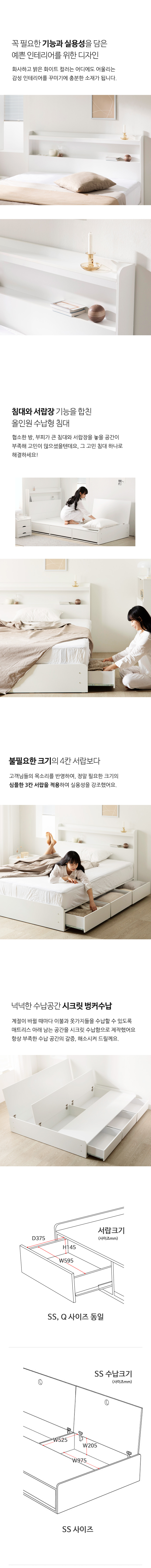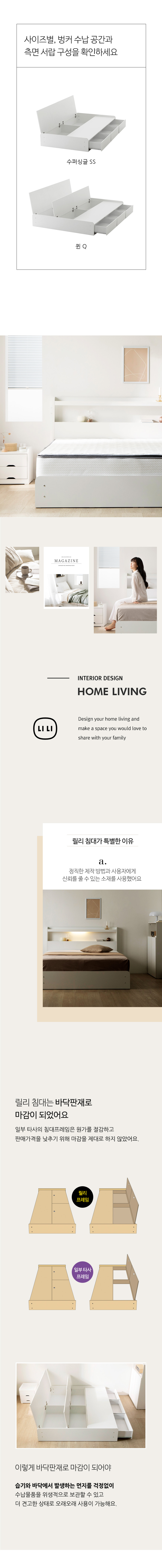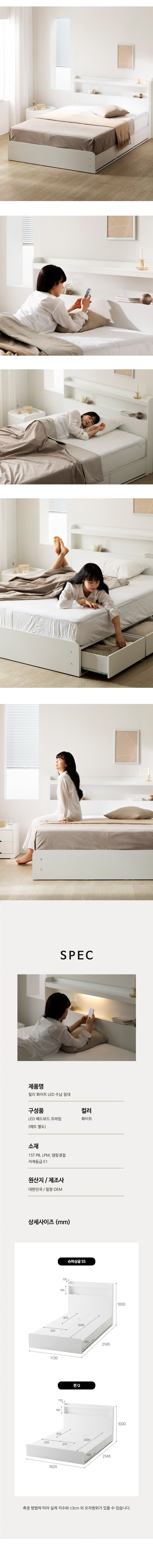 밀랑 릴리 화이트 LED 평상형 수납 침대 프레임 SS Q