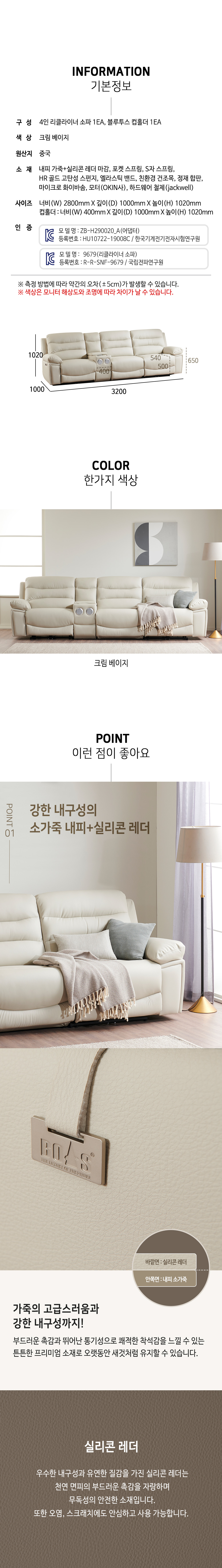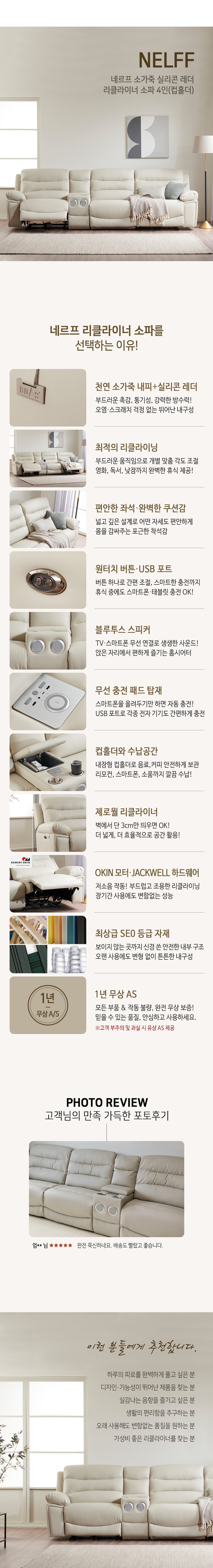 스코나 네르프 소가죽 실리콘레더 4인용 전동 리클라이너 소파(컵홀더,제로월)