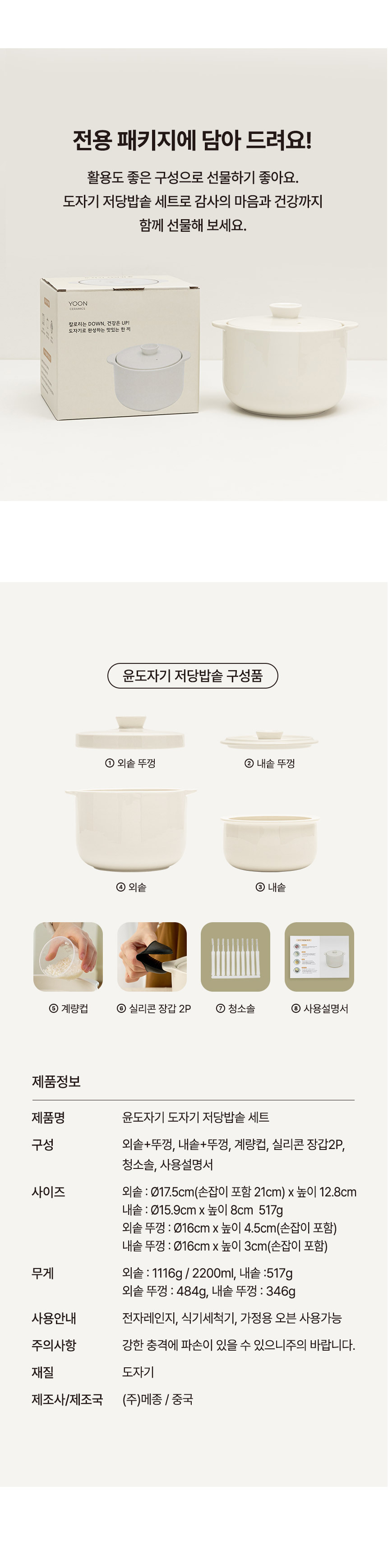 윤도자기 도자기 전자레인지용 저당밥솥 세트