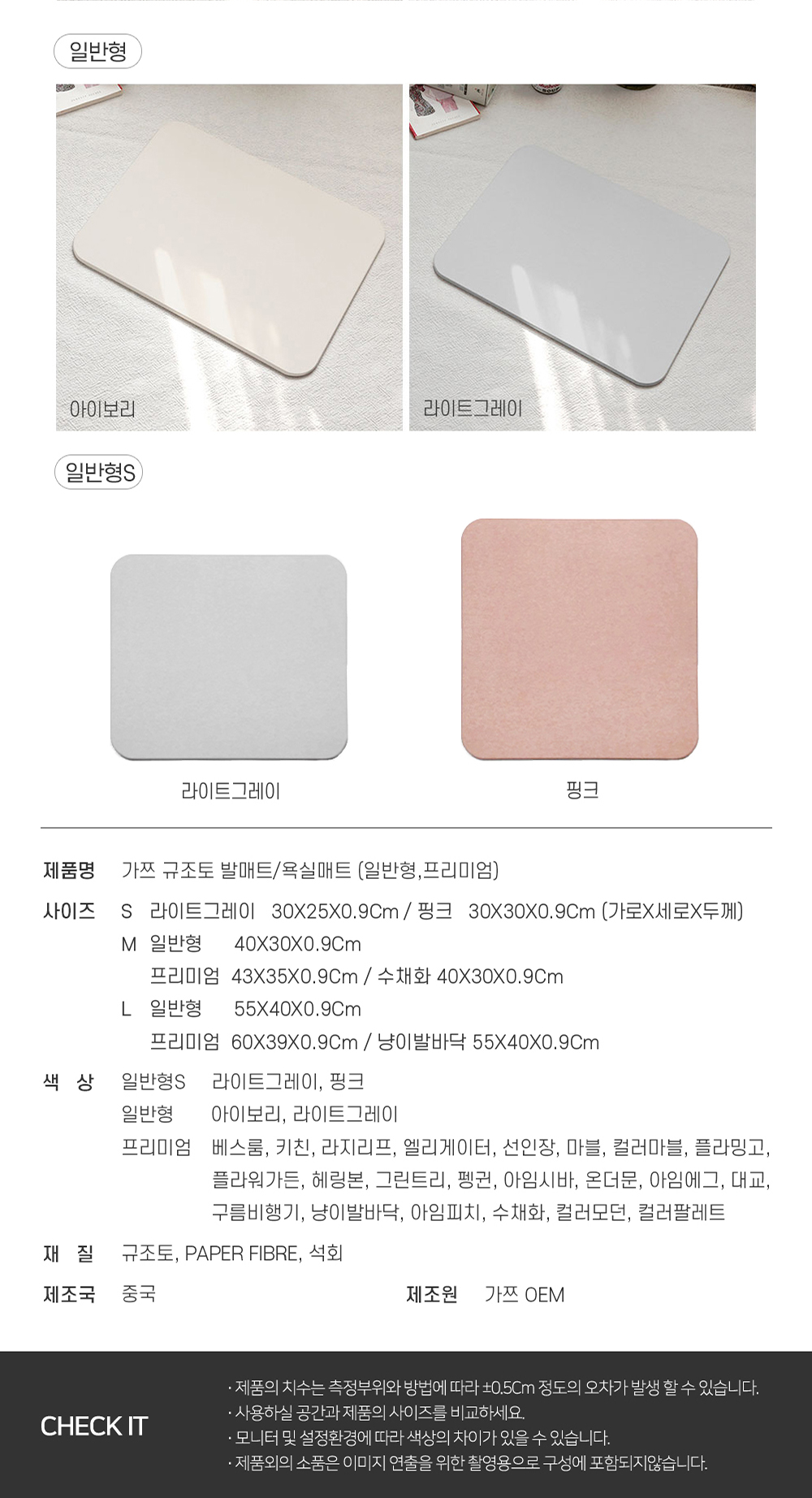 가쯔 프리미엄 규조토 발매트/욕실매트 M+L
