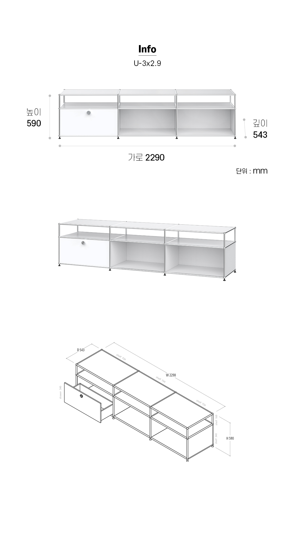 유니스트엠 거실 수납장 장식장 U-3X2.9 모듈가구