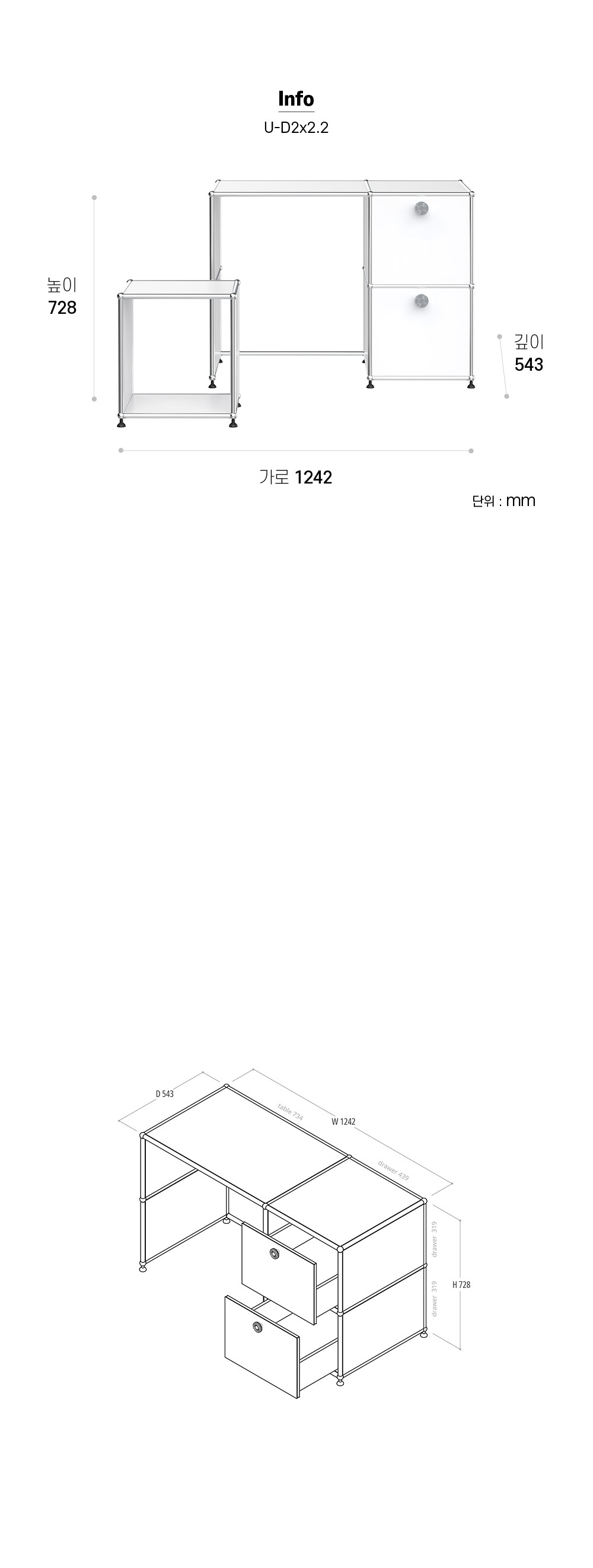유니스트엠 책상 수납장 장시장 D2X2.2 모듈가구