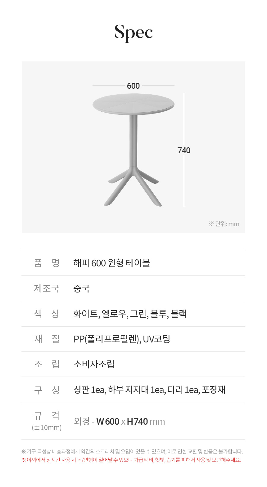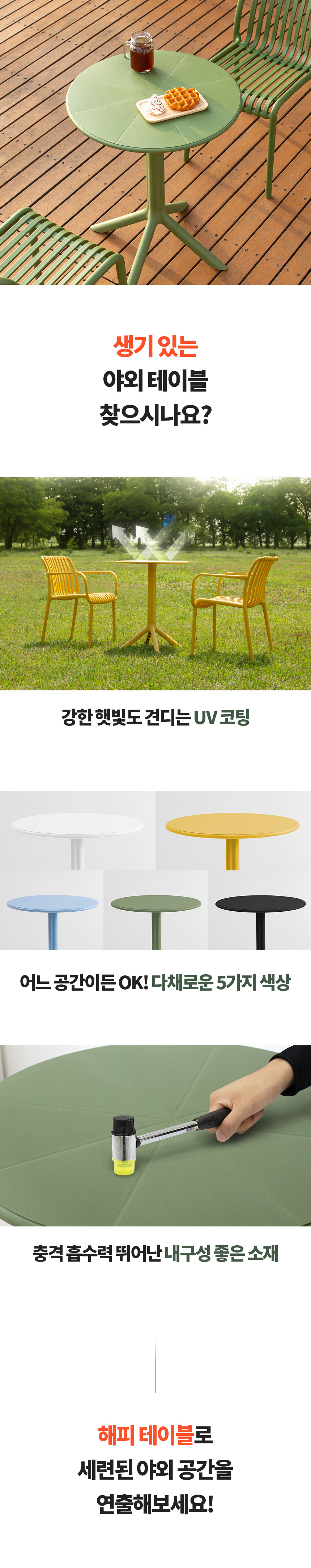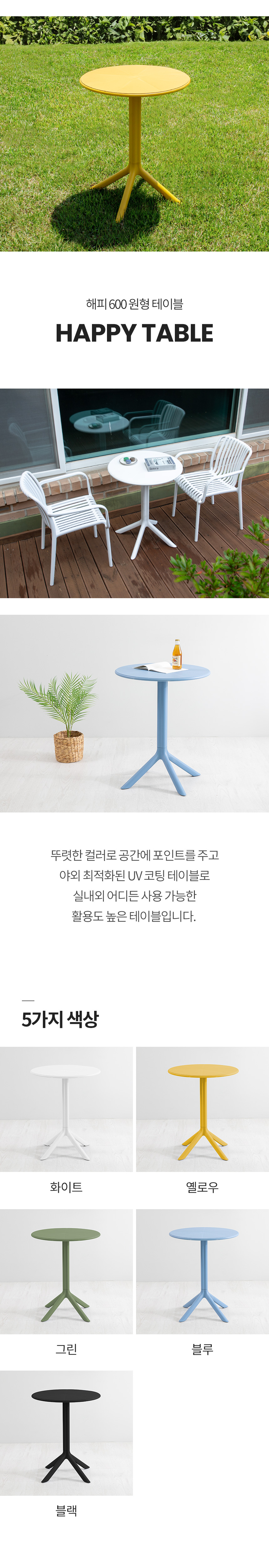 해피 600 원형 야외 테이블 카페 커피숍 테라스 인테리어 플라스틱 테라스 정원 UV코팅
