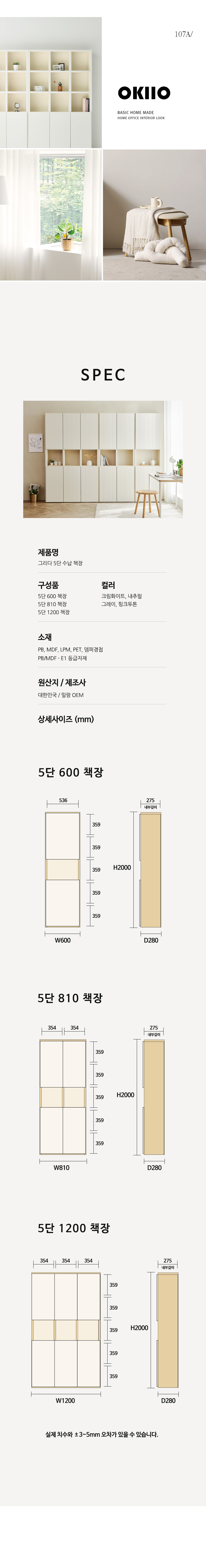 밀랑 오키오 5단 1200 수납 책장 4colors