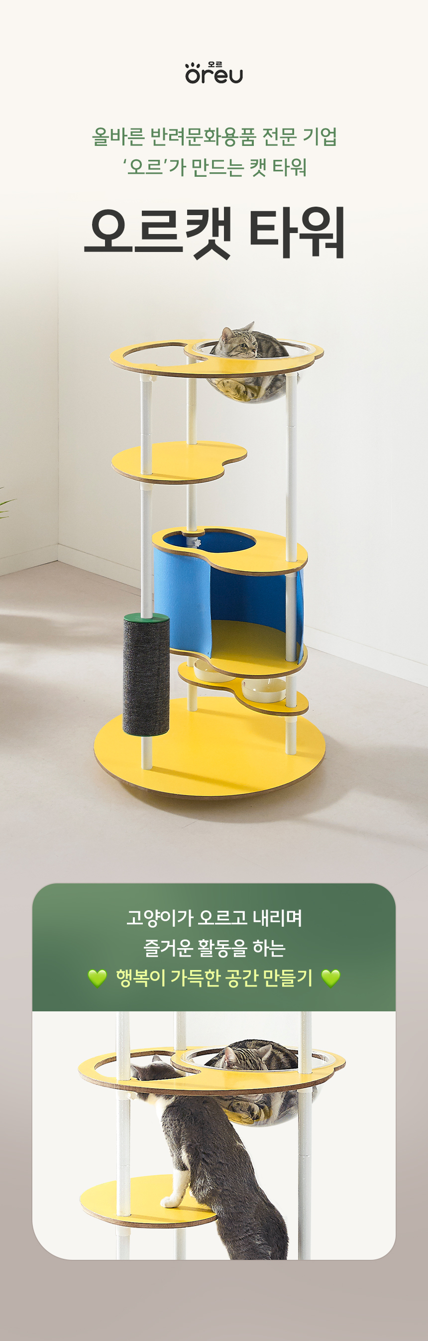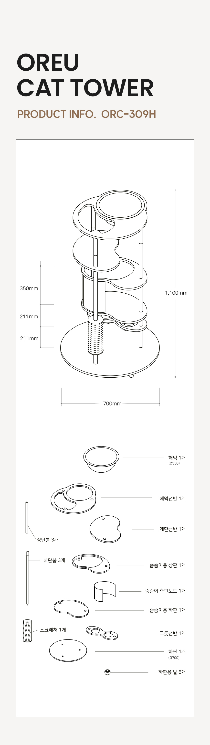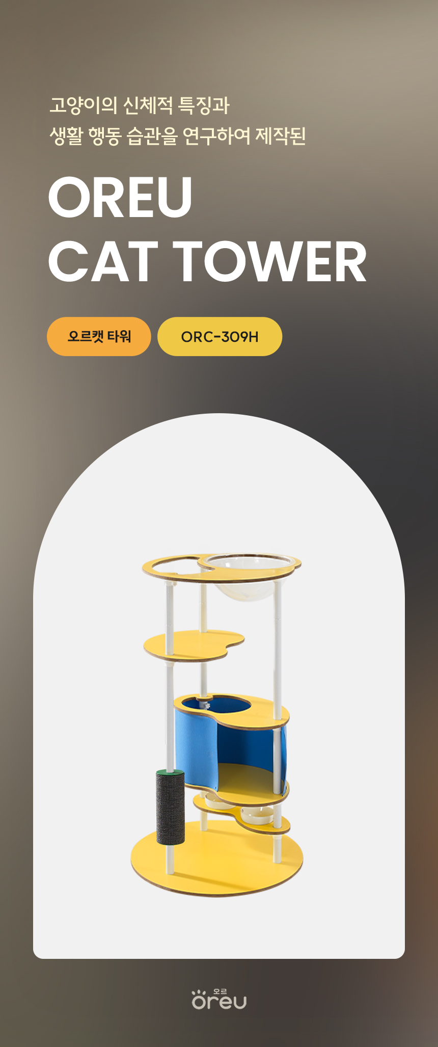 오르 ORC-309H 튼튼한 DIY 원목 캣폴 캣스텝 계단 고양이 미니 캣타워