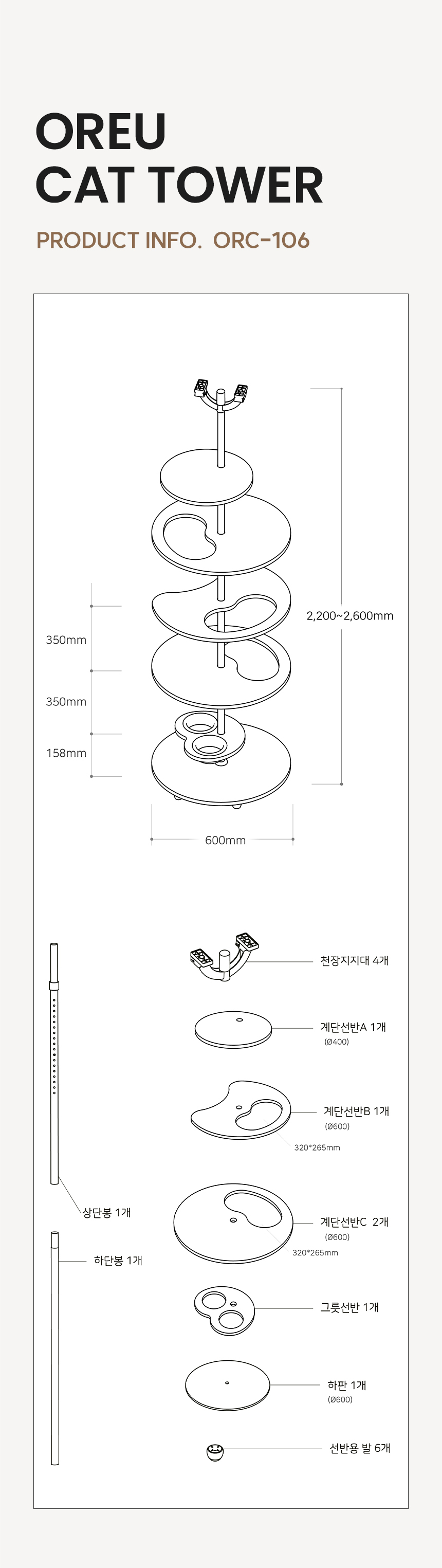 오르 ORC-106 튼튼한 DIY 원목 캣폴 캣스텝 계단 고양이 미니 캣타워