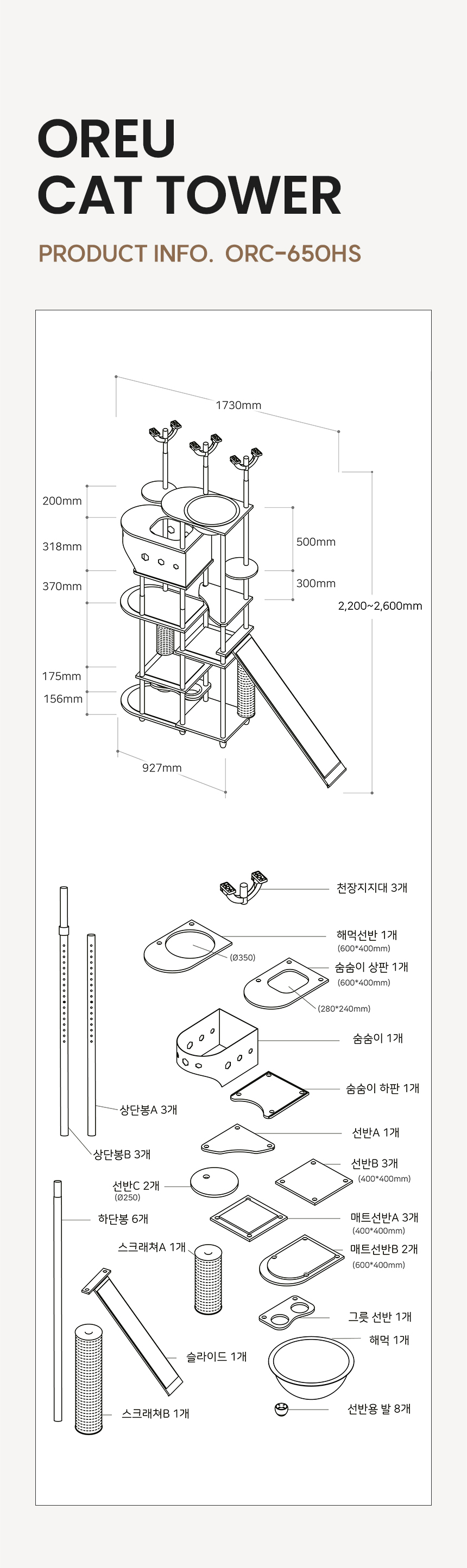 오르 ORC-650HS 튼튼한 DIY 원목 캣폴 캣스텝 계단 고양이 미니 캣타워