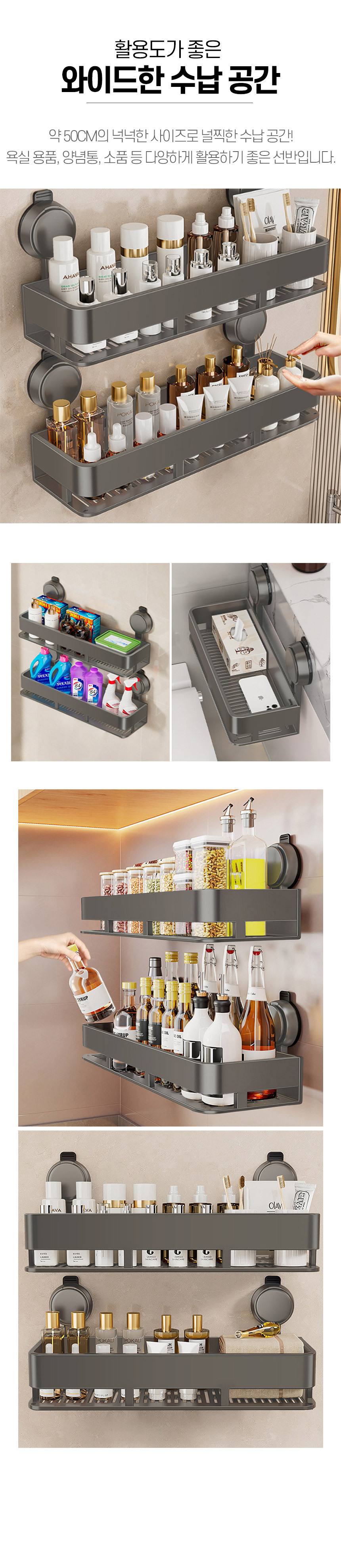 무타공 꾹눌러 흡착 와이드 선반 50cm