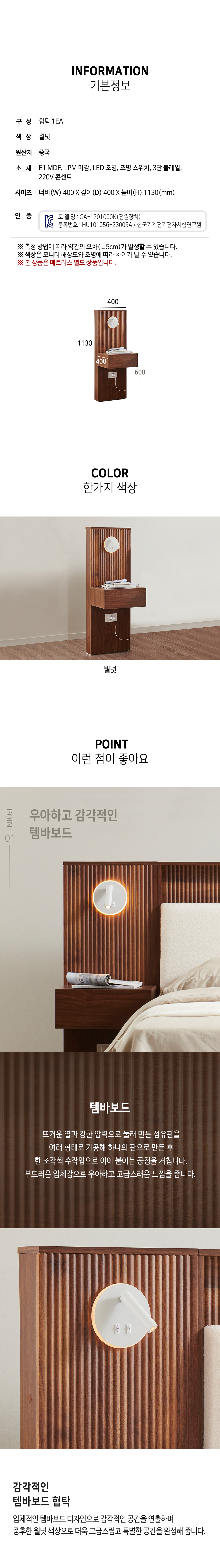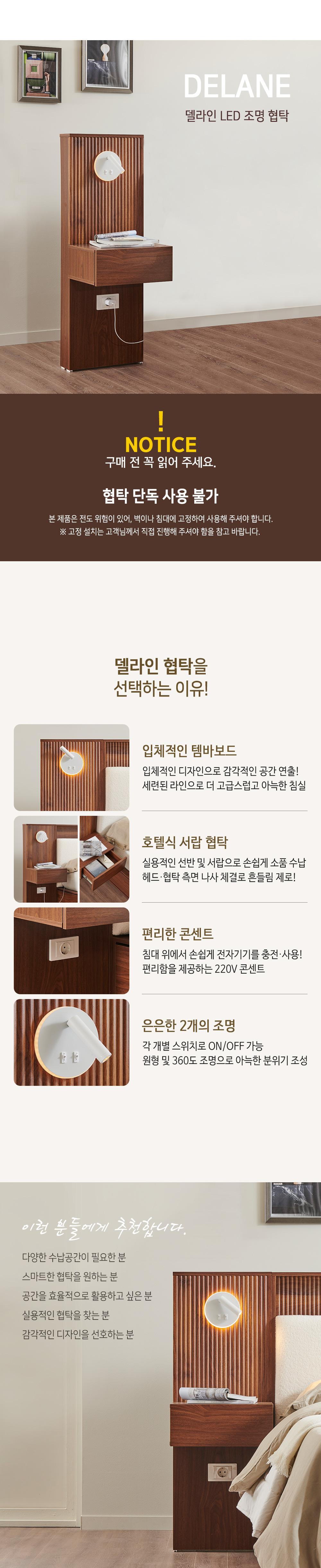 스코나 델라인 템바보드 LED 조명 콘센트 협탁